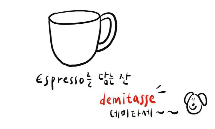 에스프레소를 담는 잔을 ‘데미타세’demitasse라고 부른다. 1온스, 약 30ml의 적은 양을 추출하기 때문에 열을 안아줄 수 있는 작고 도톰한 잔을 사용한다.