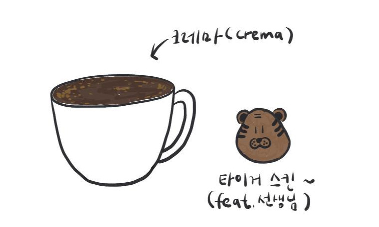 선생님은 크레마를 재미있게 ‘타이거 스킨(tiger skin)’이라고 부르셨다. 그때부터 우리의 타이거 스킨 찾기 대작전은 시작됐다. 에스프레소를 뽑을 때마다 서로의 호피 무늬를 찾으려고 했다.