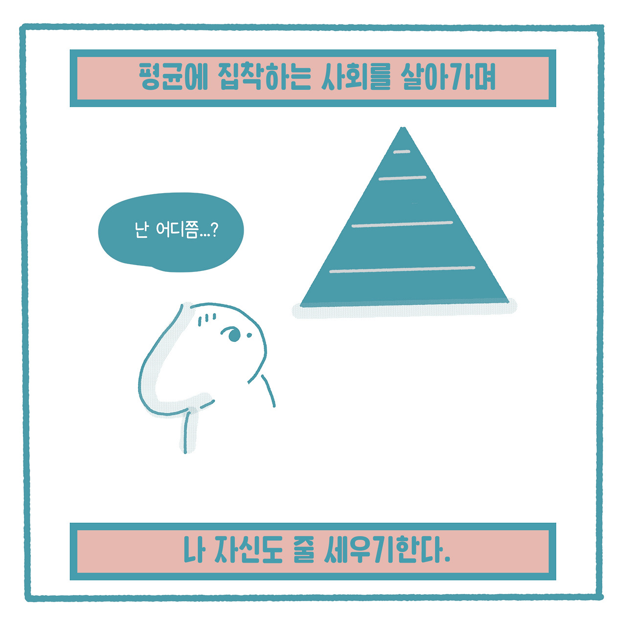 취업자 평균 스펙, 직장인 평균 연봉, 결혼에 성공한 사람들의 평균 스펙, 평균에 집착하는 사회를 살아가며 나 자신도 줄 세우기한다.