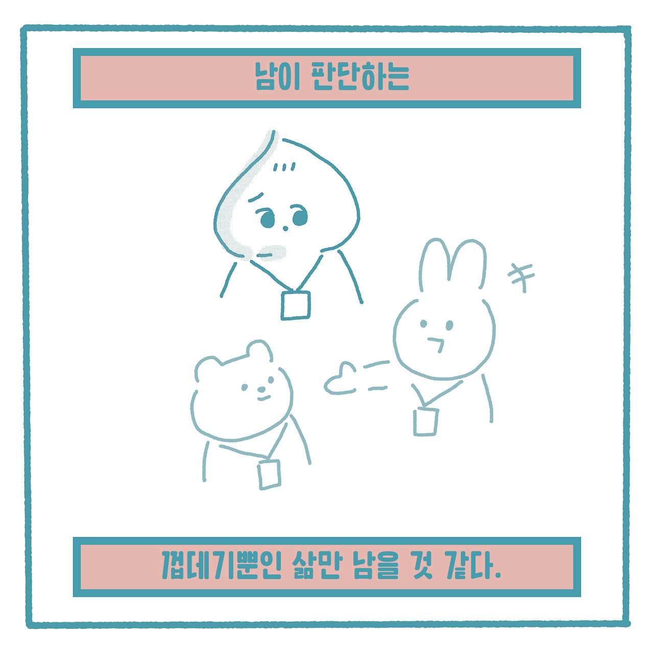 남들이 말하는 것을 기준으로 삼으면 결국 ‘나’는 사라질 것이며, 남이 판단하는 껍데기뿐인 삶만 남을 것 같다.