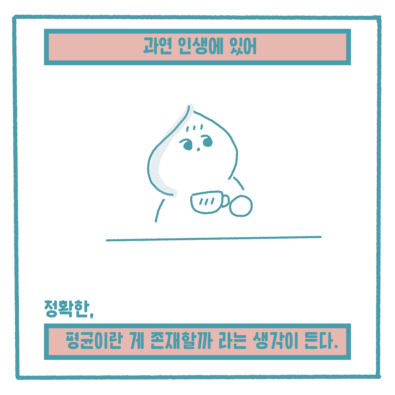 왜 난 이것밖에 안 될까, 혹은 평균 이상이라며 자신을 위로하곤 하는데 사람들은 모두 다 다른 삶을 가지고 있고 처한 환경과 여건이 다른데 과연 인생에 있어 정확한 평균이란 게 존재할까 라는 생각이 든다.