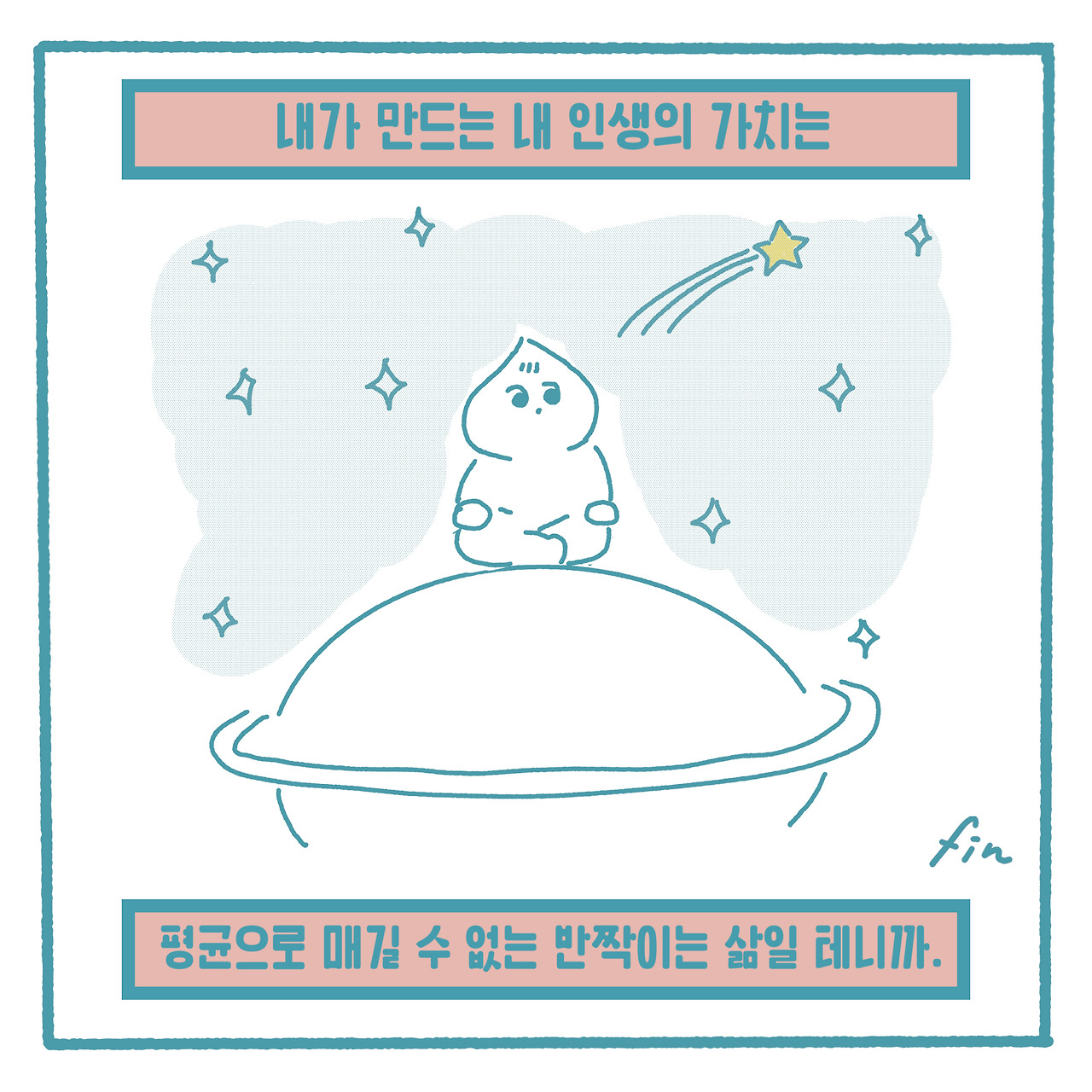 내가 만드는 내 인생의 가치는 평균으로 매길 수 없는 더없이 반짝이는 삶일 테니까.