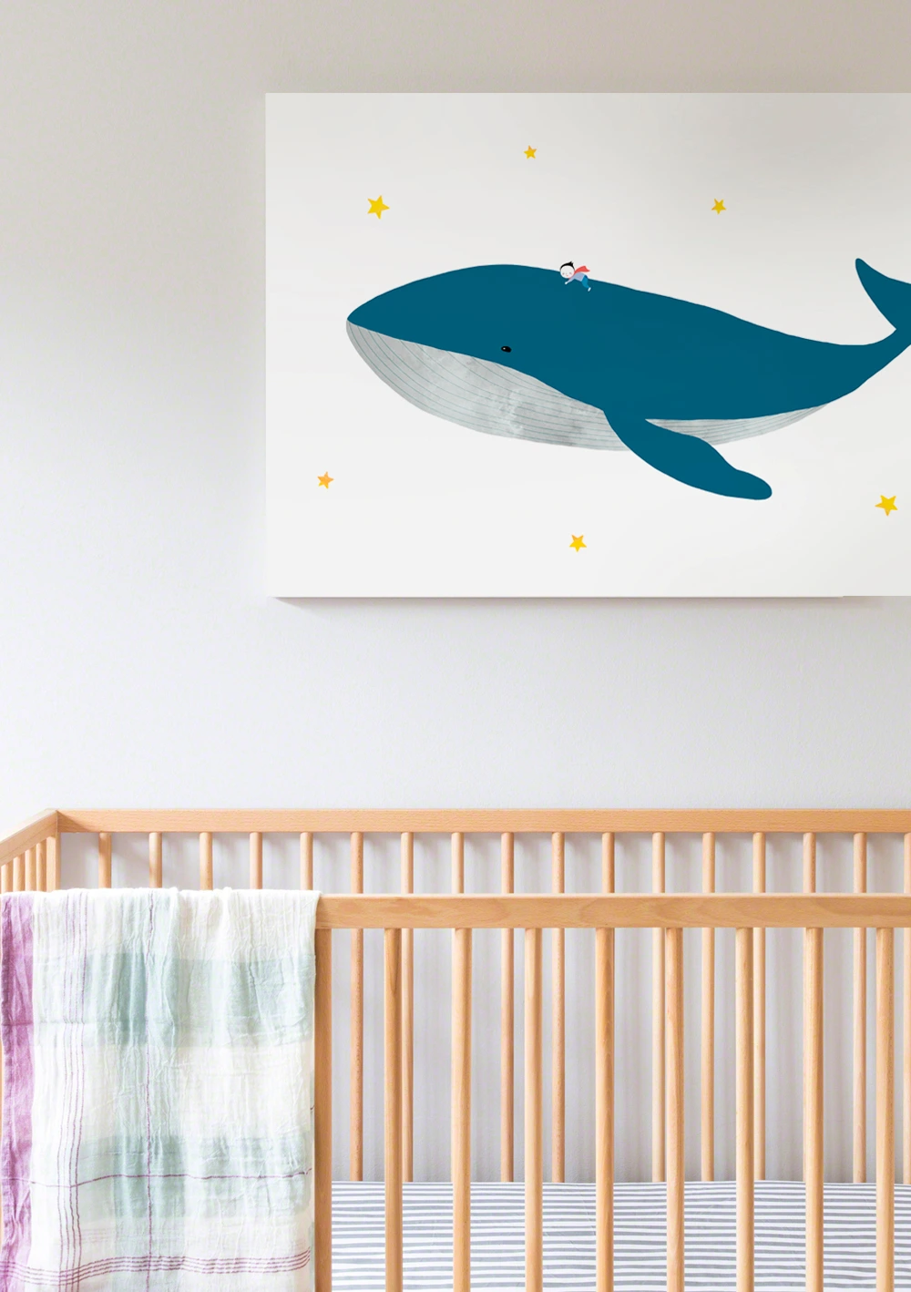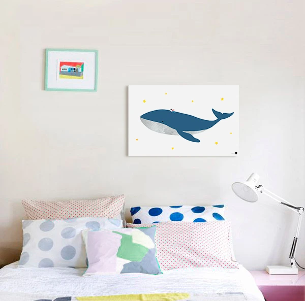 아가 침대의 머리 맡에 그림을 둡니다.