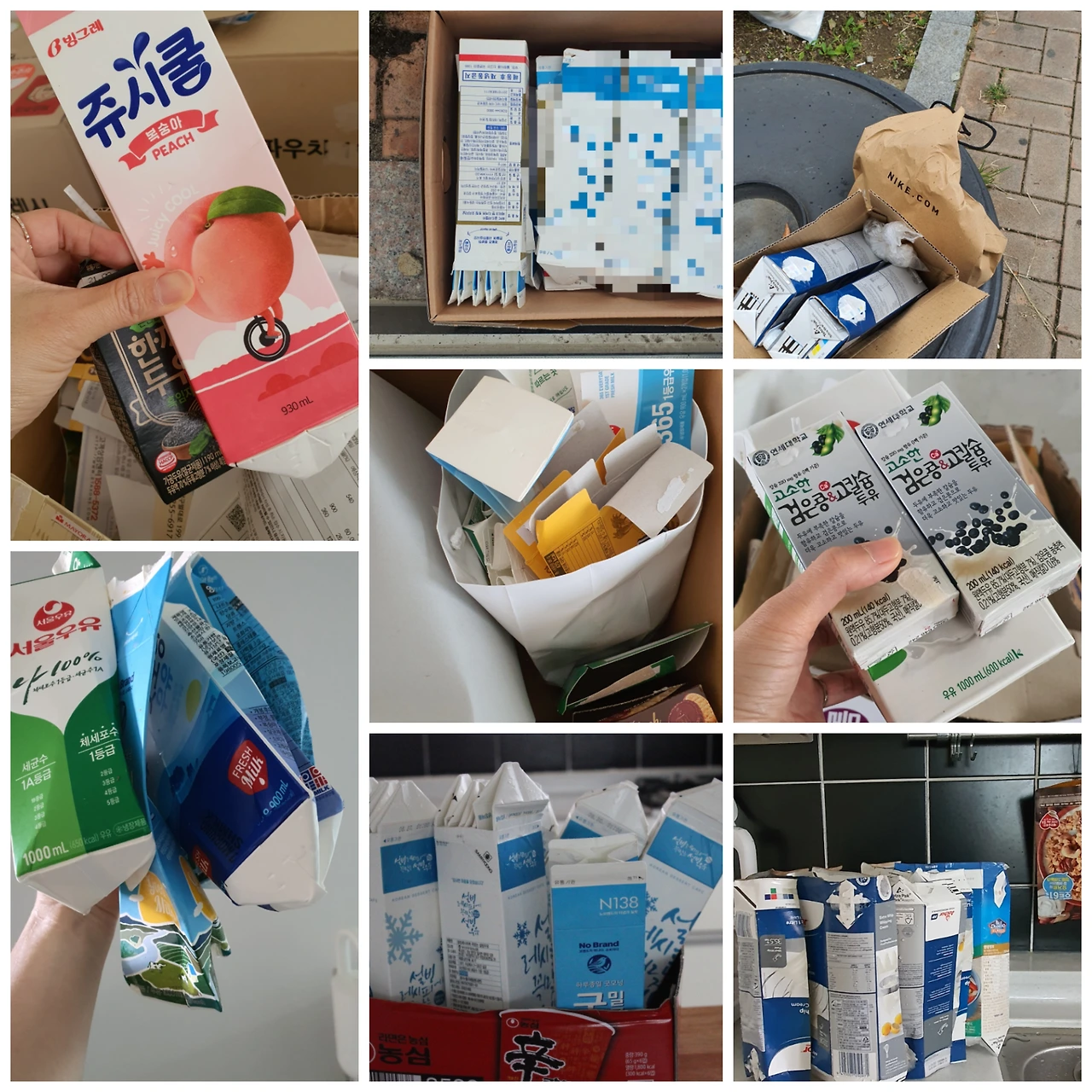 운전을 하다가도 길을 걷다가도 장 보러 가다가도 커피를 마시러 가다가도 눈에 보이는 단한개의 우유팩도 주워 옵니다 정말 우유팩에 진심을 담고 있습니다.