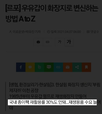눈으로 보던 중 재생휴지의 우유갑이 문제였습니다. 국내에서 전부 수거해서 만들 줄 알았는데