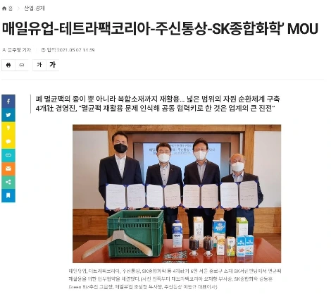 아주 행복한 소식을 듣게 되었습니다. 이전에도 시설은 있었지만 미비해서 실상 테트라팩은 수거해도 자원 활용을 위한 기술이 필요하다 보니 활용률이 높지 않았죠