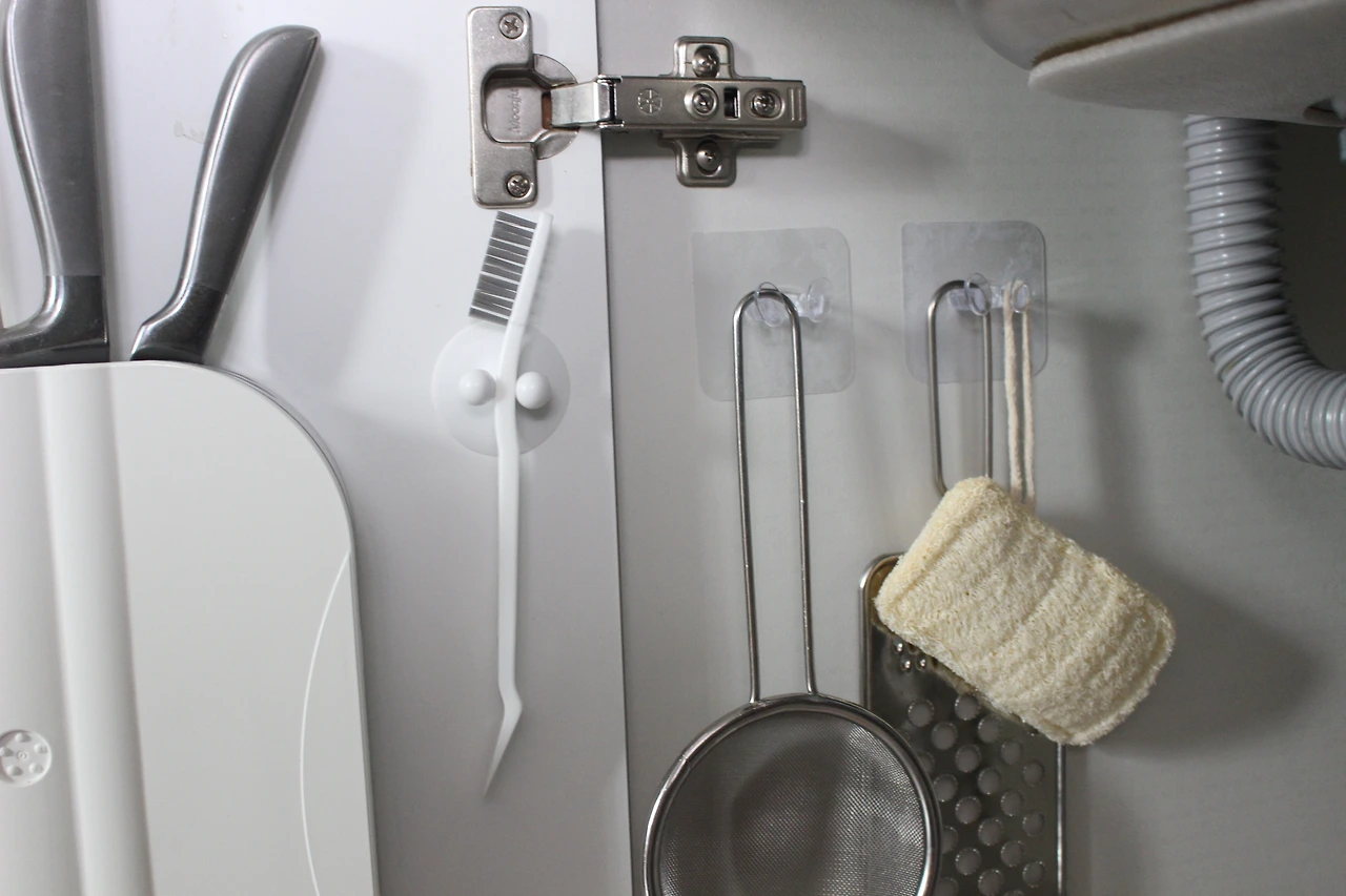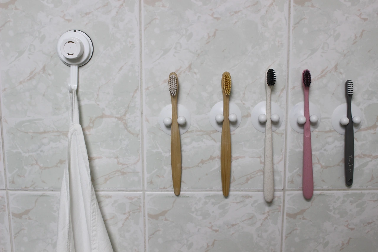 밀짚 역시 기후와 조건이 맞으면 6개월 내 땅속에서 생분해가 된다고 하는데 일반 플라스틱보다는 조금이라도 지구에 해가 되지 않는 물건으로 사용하려 노력하다 보니 밀짚이라는 소재에 대해 공부해 보기도 한다 칫솔꽂이는 세척 편하고 칫솔모는 저렇게 올려서 두면 꽂이에 닿지 않아서 위생적으로 좋은 물건이다 흡착 걸이를 사용한 건 대략 10년 전쯤부터였다 그때는 화이트는 거의 살 수 없었고, 알록달록한 색들뿐이었는데 이것 역시 시간이 지나면 조금씩 조임이 헐거워져서 교체는 해주어야 하기에 지난번 교체시기에 사이즈도 크고 내가 추구하는 화이트로 구매를 했다. 욕실뿐만 아니라 주방에서도 정리할 때 편리하게 사용된다.