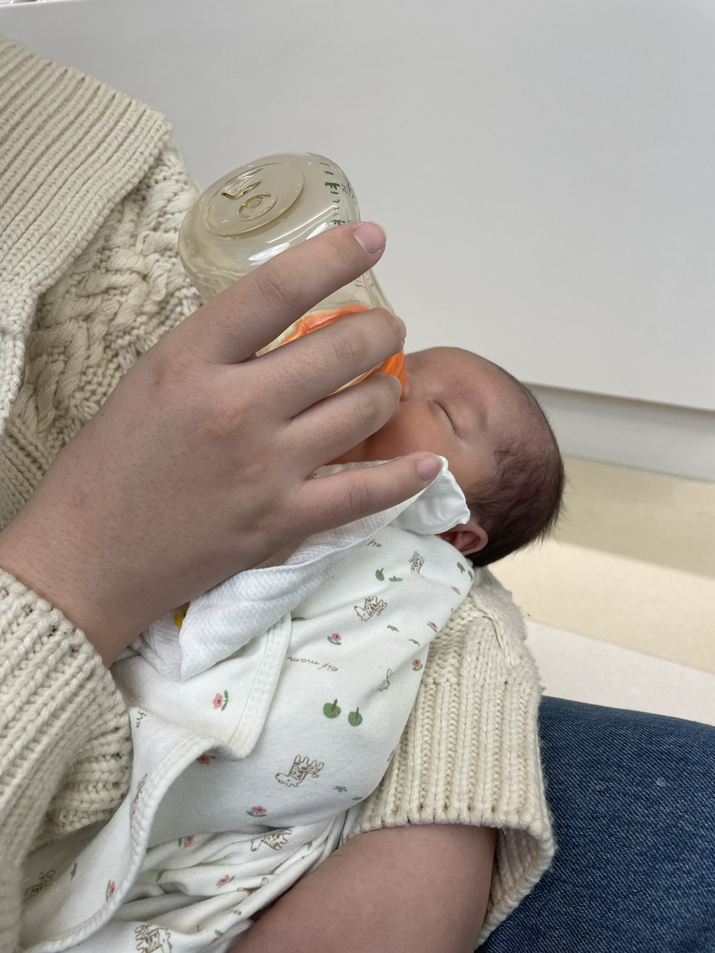 젖량이 계속 줄어서 유축 횟수를 줄였고, 그러다 보니 자연스레 단유가 되었다. 속 시원! 포도는 분유를 아주 천천히 먹는 편이었다. 빠는 게 힘든가 싶어서 병원에서 쓰던 젖병으로 바꿔봤는데 큰 차이는 없었다. 양도 들쭉날쭉했다. 남기겠지 싶어서 80ml만 타면 다 먹은 뒤 아쉬운 듯 쩝쩝대고, 많이 타서 주면 남기고…. 어쩌라는 거냐ㅋㅋㅋ 그래도 양이 점점 들어서 3월 말쯤엔 보통 120ml를 먹곤 했다.