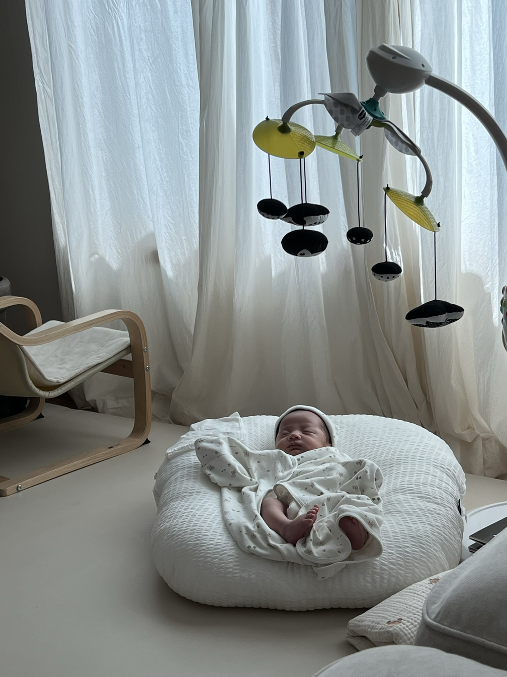 처음엔 포도랑 밤새 같이 있고 싶은 마음에 내가 새벽수유를 자처했는데, 며칠 지나지 않아 포기…. 엄마가 밤새 포도를 봐주셨다. 아침에 일어나면 포도는 잘 잤냐고 엄마에게 묻곤 했는데, 돌아오는 대답은 같았다. 너무 미안했지만, 오늘 밤엔 내가 보겠다는 말이 섣불리 나오지 않았다. 수면에 도움 된다는 여러 육아템들을 시도해 봤는데, 특별히 효과가 있는 건 없었다. 역류방지쿠션에 두면 조금 잘 자는 편이었으나 그것도 아기 허리에 그렇게 좋은 건 아니라고 해서 자주 사용하진 않았다. 그런 포도는 낮시간엔 이래도 되나 싶을 정도로 많이 잤다. 먹을 때만 귀신같이 깨서 우는 포도.
