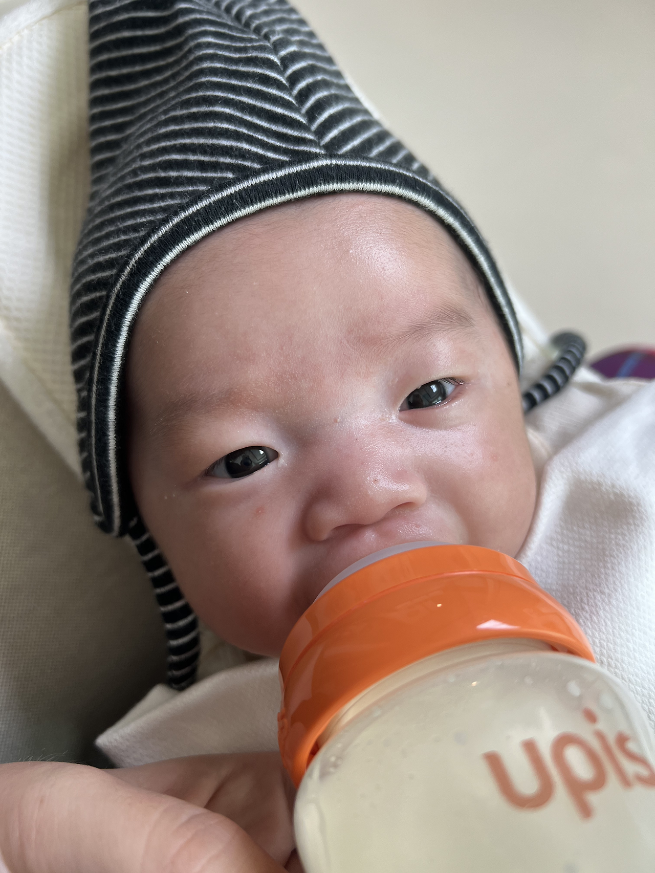 기록해 둔 거 정리하다 보니 먹이고 재우는 게 전부다. 하지만 그 두 가지가 너무 힘든 신생아 육아. 신생아 포도는 이맘때 배앓이를 심하게 했다. 마침 콧물 때문에 항생제를 먹고 있어서 그게 문제가 되려나 싶어 병원에 물어봤더니 그것도 아니라고 했다. 분유 타는 방법도 바꿔보고 젖병도 바꿔보고 했는데 소용이 없어서 가지고 있던 다른 분유 샘플을 먹여보았다. 다행히 배앓이는 눈에 띄게 줄긴 했는데, 녹변을 보고 자주 게워냈다. 하지만 이것도 분유 때문인지는 확실히 알 수가 없다. 모든 것이 모호한 신생아 육아…. 일단은 배앓이가 줄었으니 바꾼 분유로 정착해 보기로. 그래도 수유가 마냥 힘든 건 아니었다. 목에 손수건을 대면 맘마 주는 줄 알고 좋아서 버둥거리기도 포도의 모습이 재밌기도 했고, 수유할 때 손을 잡고 있는 느낌도 너무 좋았다.