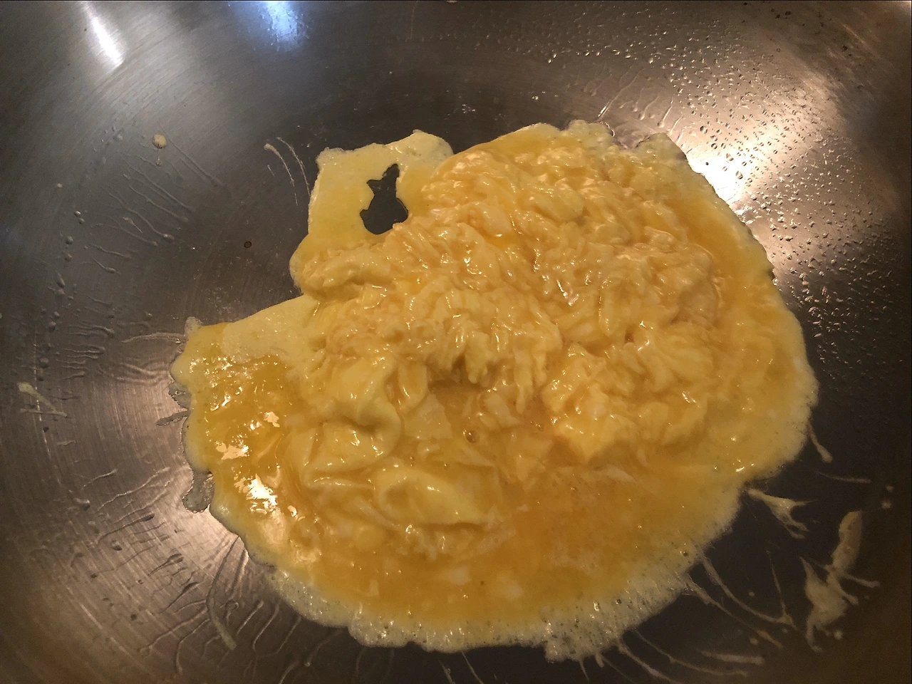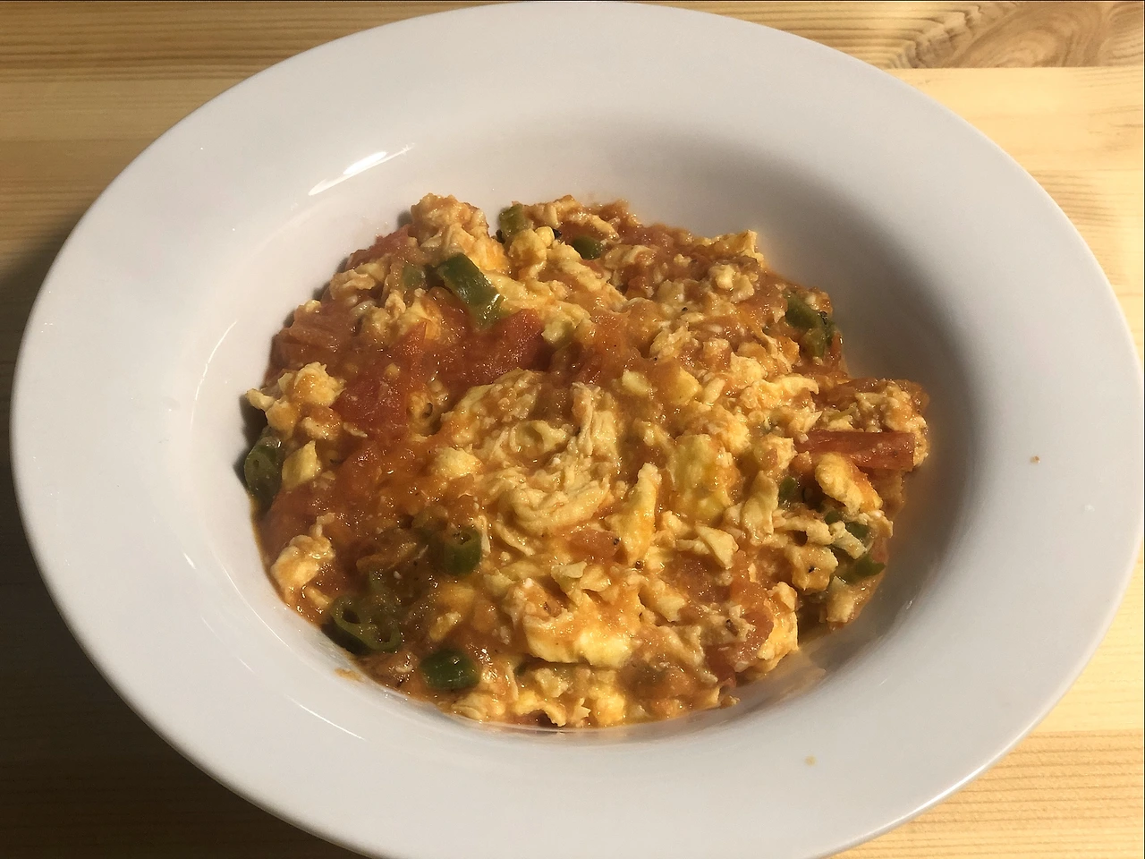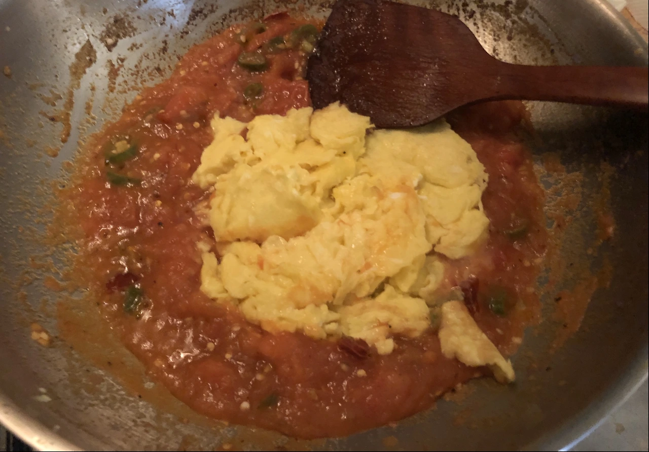 계란을 먼저 풀어놓고 소금 간을 한다. 그리고 뜨겁게 달궈진 웍에 기름을 둘러 계란 맞을 준비를 한다. 계란은 설익을 정도만 볶고 덜어낸다. 그다음 토마토를 뜨거운 불로 볶아준다. 이때 설탕도 같이 넣어준다. 물기가 적다 싶으면 뜨거운 물을 살짝 넣어주고 덩어리가 지지 않게 토마토를 으깨준다. 마무리는 계란과 합쳐주고 한번 더 중약불에 볶는다.