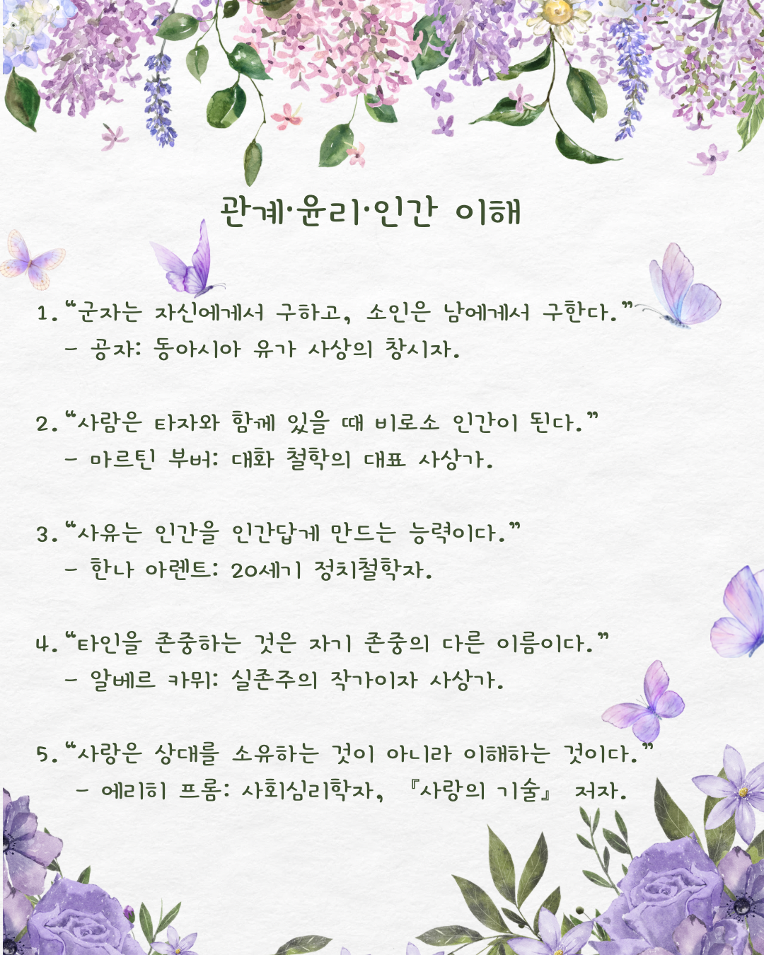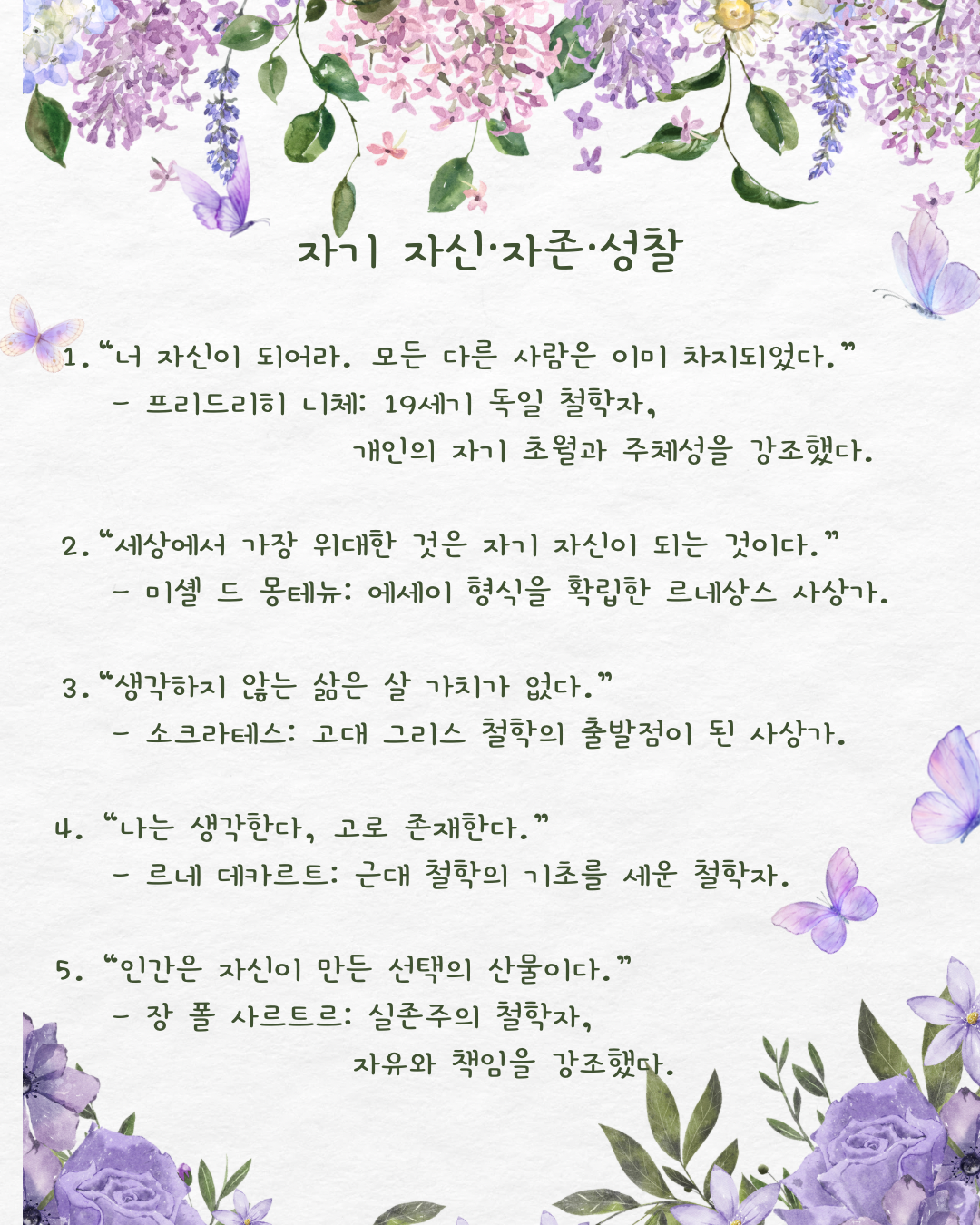 미셸 드 몽테뉴, 마르쿠스 아우렐리우스, 니체, 공자, 한나 아렌트 등은 인간의 삶과 자기 인식을 탐구한 철학자들이다. 이 글에 인용된 문장들은 자기 성찰, 통제, 관계, 성장에 대한 사유의 전통을 참고한 것이다.