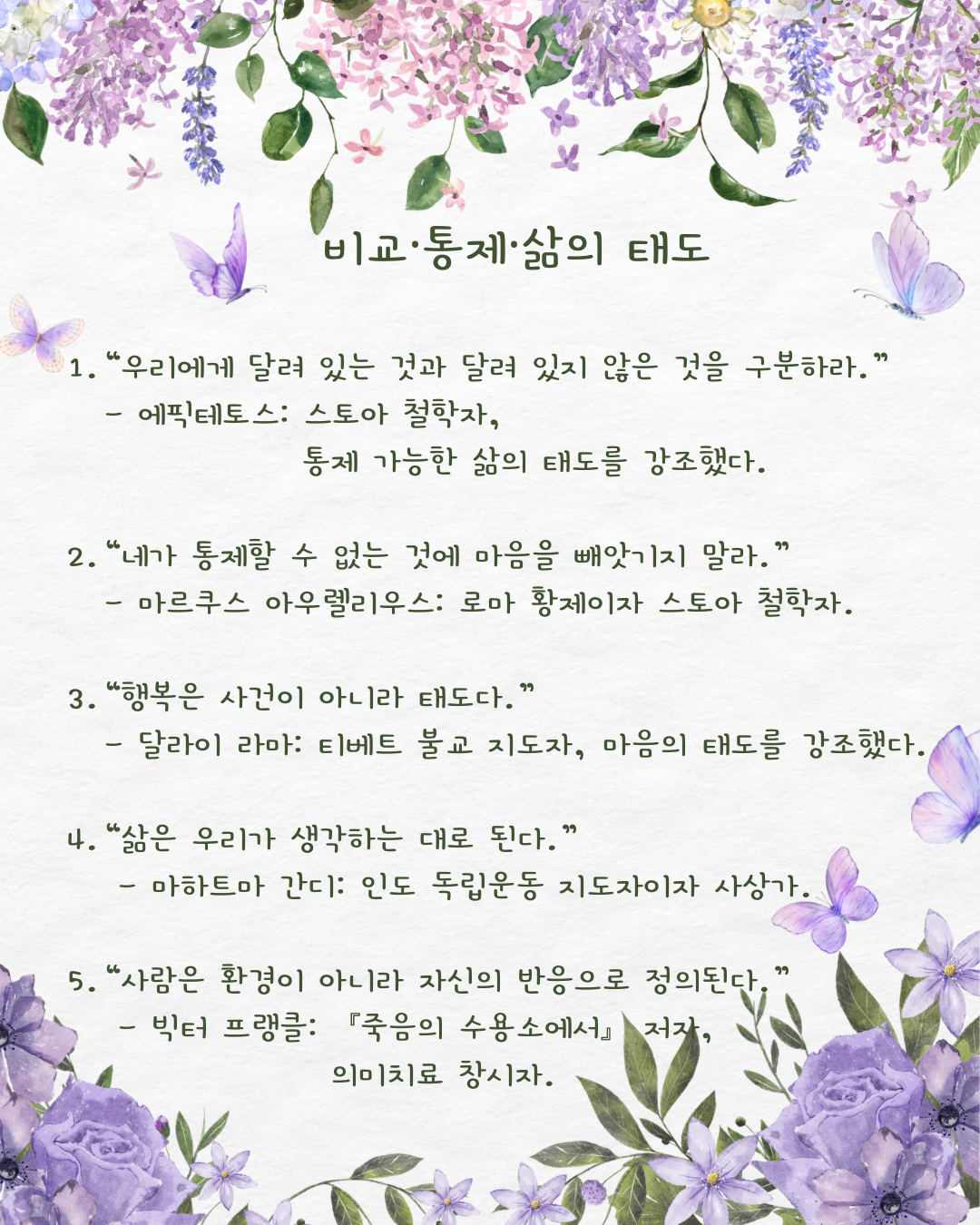 "네가 통제할 수 없는 것에 마음을 빼앗기지 말라."