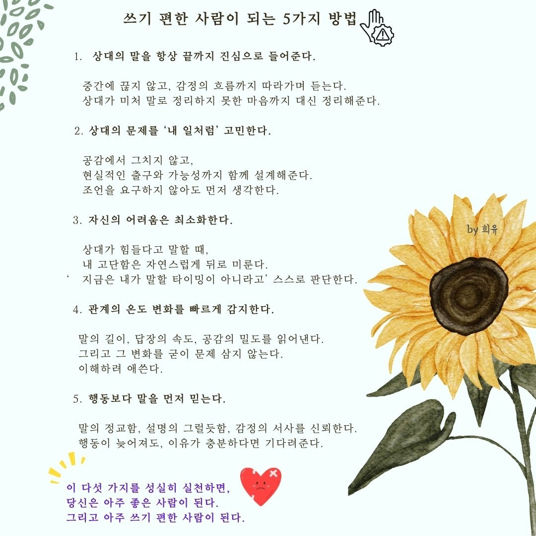 그가 힘들다고 말할 때 H양은 마음과 시간을 썼다.