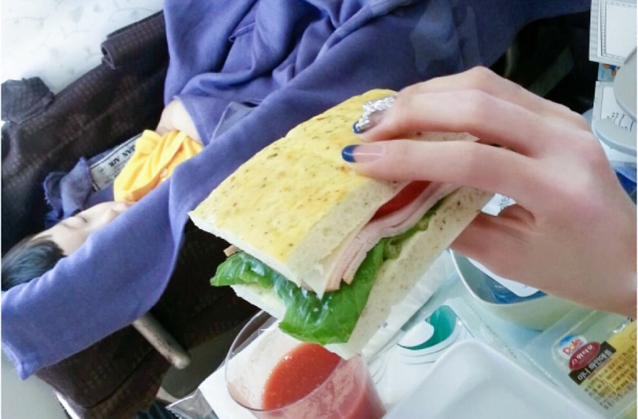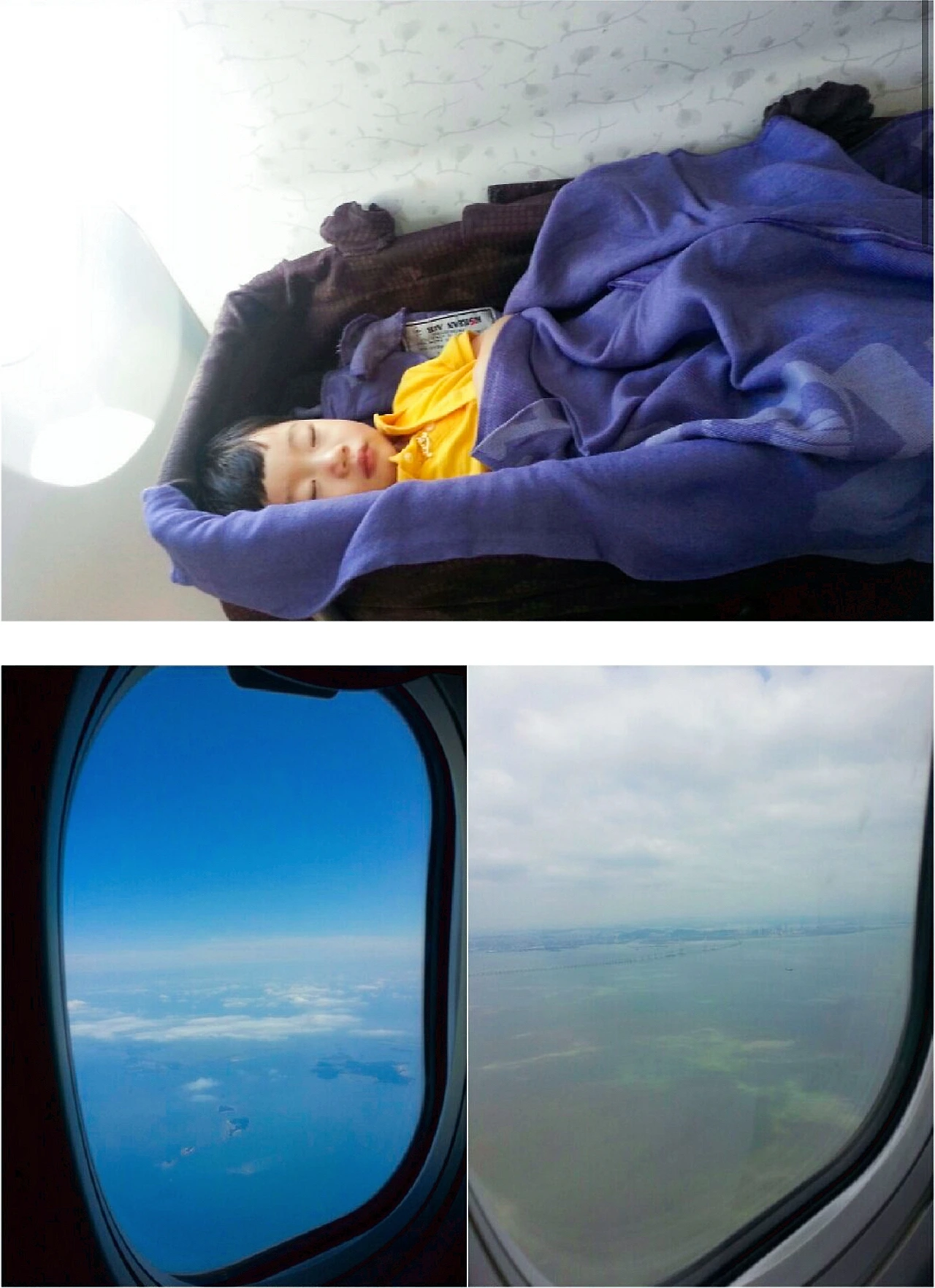 걸어 잠든 아기를 눕혀주었고, 옆자리에 앉은 낯선 승객은