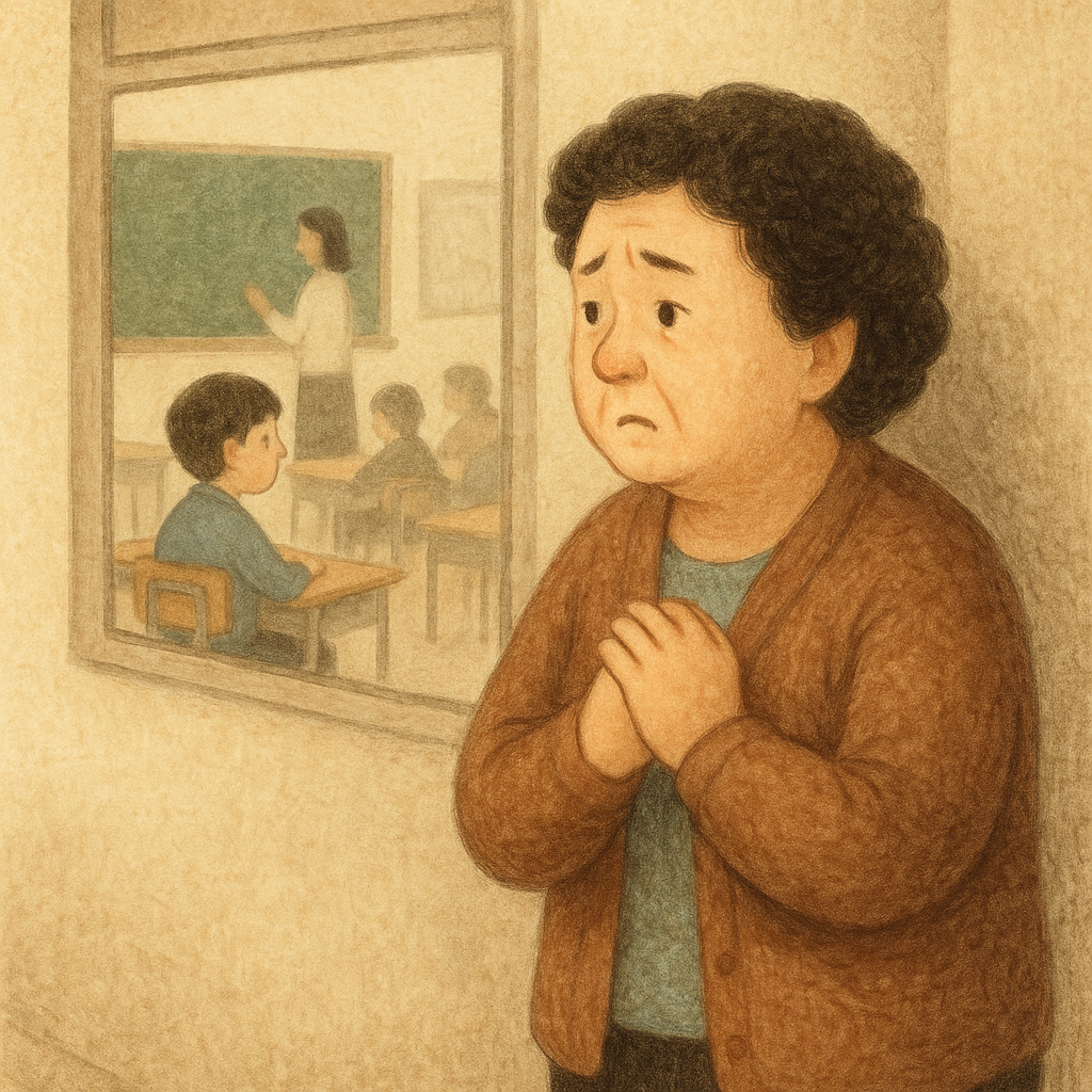 늘 교실 밖에는 그의 어머니가 서 있었다.