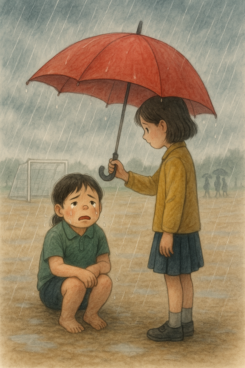 비 오는 날, 운동장에 주저앉아 비를 한껏 맞으며