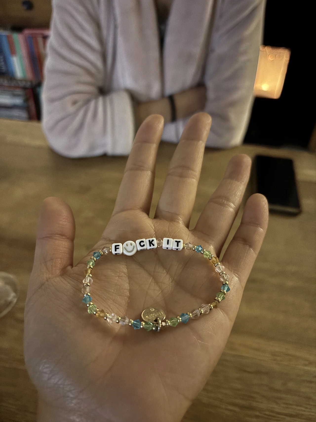 독일로 이사오며 제니와의 행복한 수요일은 그렇게 끝이 났다. 벨기에를 떠난 지 두세 달 즈음되었을 때, 우리 가족은 그리운 친구들을 보러 다시 벨기에를 방문했다. 이틀을 제니네 집에 묵으면서, 남편과 아이들이 잠든 저녁이면 오붓이 둘이서 묵혀준 이야기를 꺼내 나누었다. 나는 사이먼과 나누었던 죄책감에 대한 이야기와 독일로 이사 후 남편, 아이들과 유난히 투닥거리며 보낸 지난여름날의 이야기들을 제니에게 들려주었다. 제니는 조용히 내 이야기를 듣더니, 거실 서랍 어딘가에 있던 팔찌를 꺼내와 보여주며 말했다.