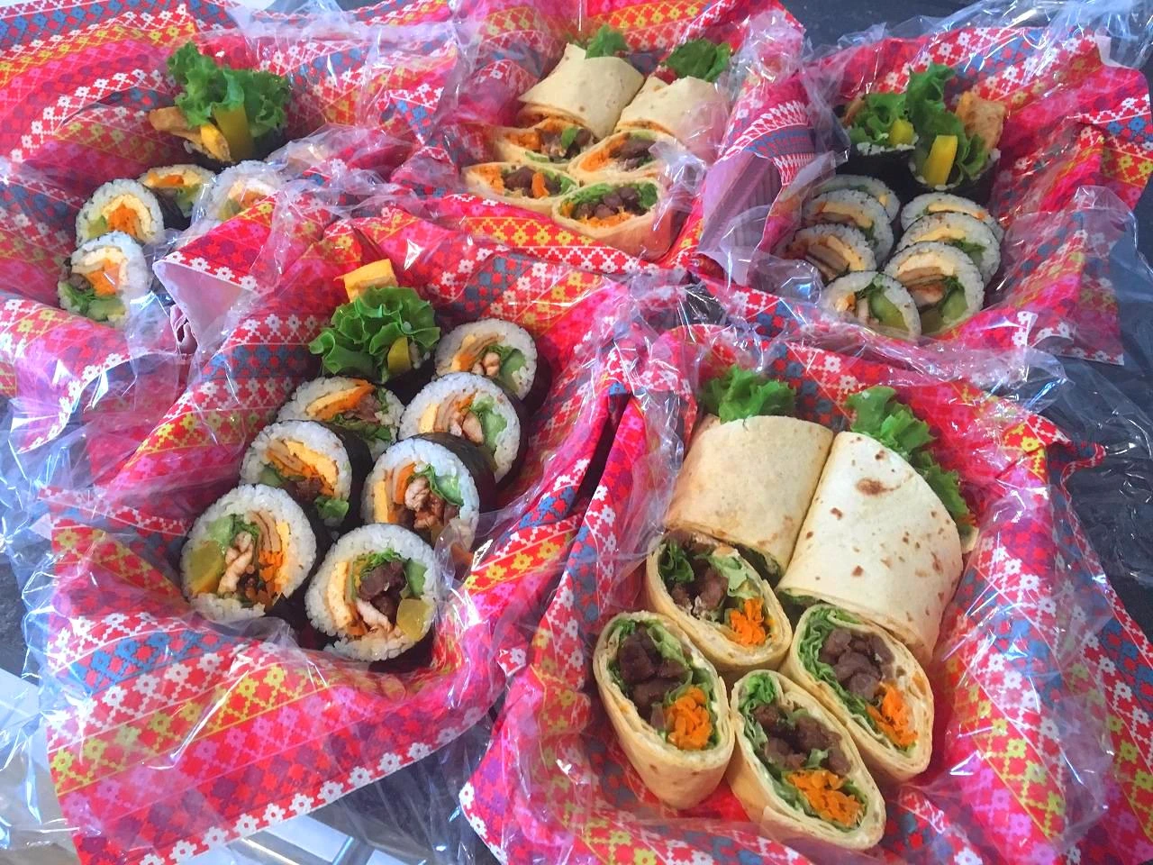 전기밥솥이 없는 나는 새벽부터 일어나 냄비밥을 짓고, 재료를 손질하느라 정신이 없었다. 혹시나 김밥을 안 좋아할 사람들을 위해, 불고기를 넣은 토르티야 롤도 함께 만들었다. 결혼 이후에 처음으로 부인의 음식 솜씨를 보여줄 기회이다 보니 혹 맛이 없으면 어쩌나, 입맛에 안 맞으면 어쩌나 음식을 준비하면서도 마음이 조마조마했다. 우여곡절 김밥과 불고기 롤을 담은 여덟 개의 도시락을 완성하였다. 부족한 재료에 이 정도면 훌륭하다 스스로를 위로하며, 종이 가방에 도시락을 차곡차곡 담아 남편의 손에 들려 보냈다.