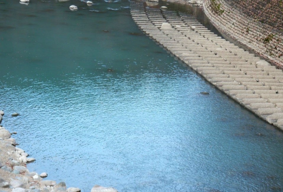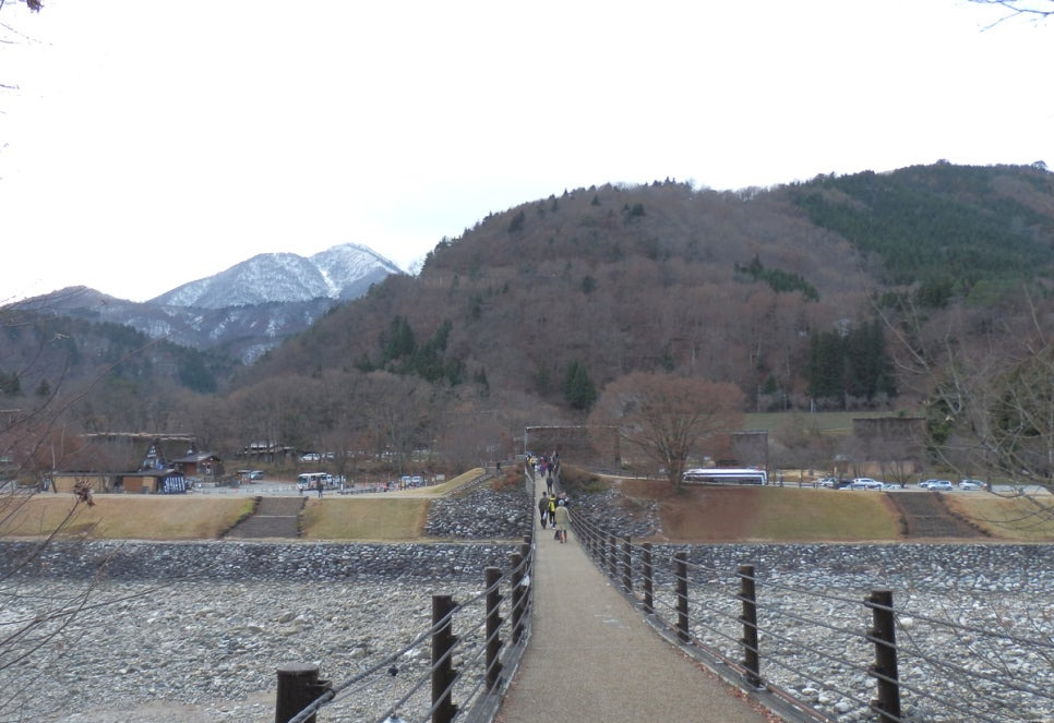 시라카와고의 - 말 그대로 하얀 강을 보기 위해 다리를 건너보기로 했다.