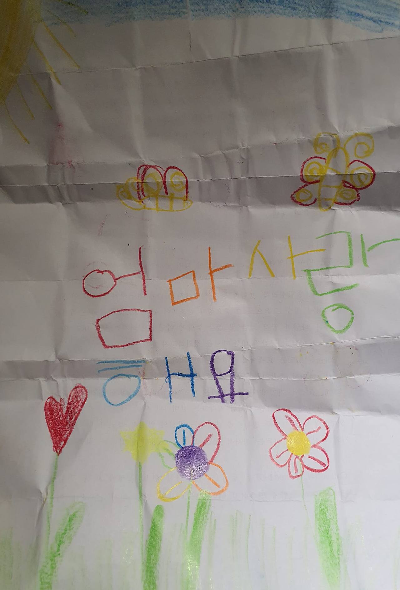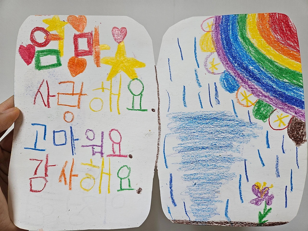 첫째는 매일 종이 가득 무지개와 하트와 꽃들을 그려 내게 사랑 고백을 한다.