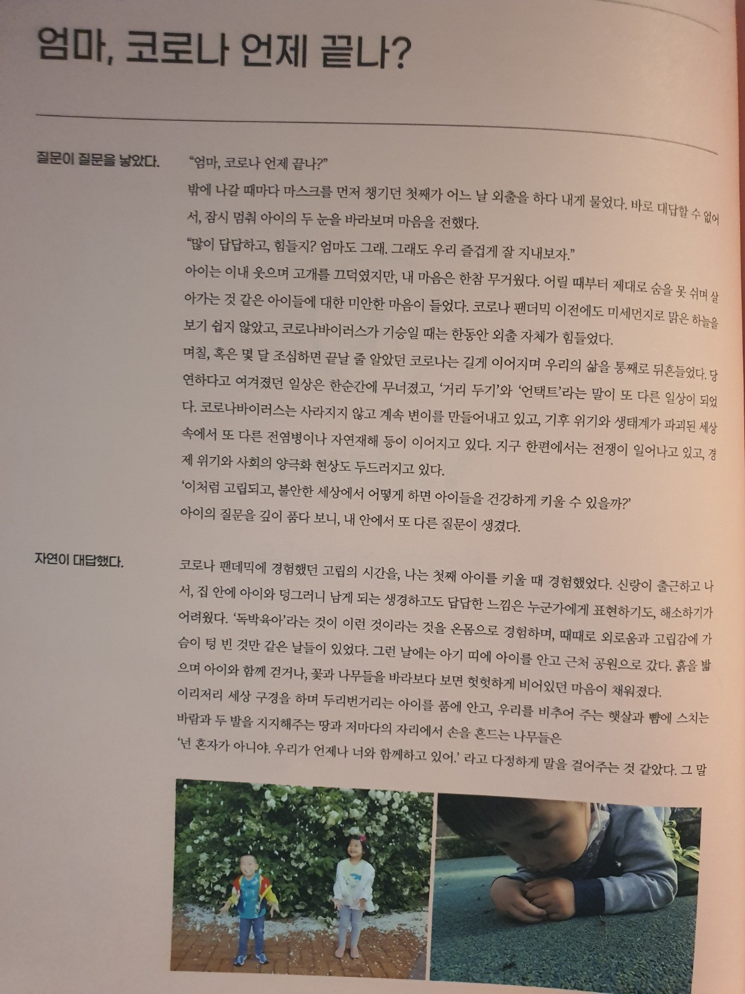 그러다가 인생 잡지 <치킨집>에 원고 요청을 받고, 주제에 맞는 분량 있는 글을 쓰게 되었다. 그 계기로 지난여름부터 브런치에 글을 올리기 시작했다. 10여 년 전 써두었던 우울증과 그 이후의 경험들을 위주로 2권의 브런치 북을 만들었고, 두 아이의 엄마로 살아가는 일상이나 요리, 가르치는 아이들과의 에피소드 등 몇 가지 주제로 글들을 정리했다. 한 편씩 차곡차곡 올리다 보니, 올해 안으로 100개의 글을 올릴 수 있을 것 같다. 며칠 전에는 글이 실린 잡지를 받았는데, 종이로 인쇄된 글을 받으니 느낌이 새로웠다.