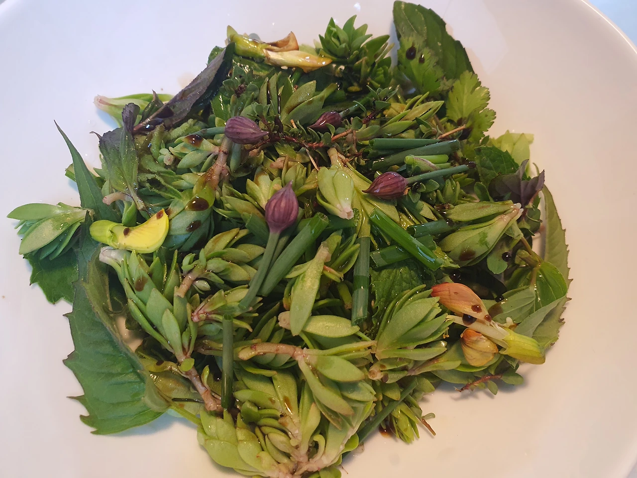 봄날의 땅은 포근하고 향긋해서, 흙을 밟고서 밭을 누비는 것만으로도 몸과 마음이 부드럽고 따스해지는 느낌을 받았다. 거기에다 여러 색과 향의 허브들을 하나씩 모으다 보니, 벌써 그 향기에 몸의 긴장이 풀리고, 마음의 무게가 덜어지는 것만 같았다. 그렇게 수확한 숲밭 속의 여러 허브들로 집에 와서 샐러드를 해 먹으며, 오늘 배웠던 허브들의 이름들을 잊을 새라 다시금 하나씩 불러보았다.