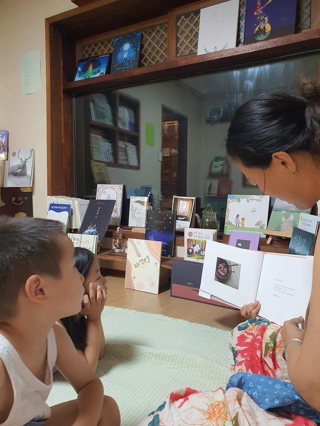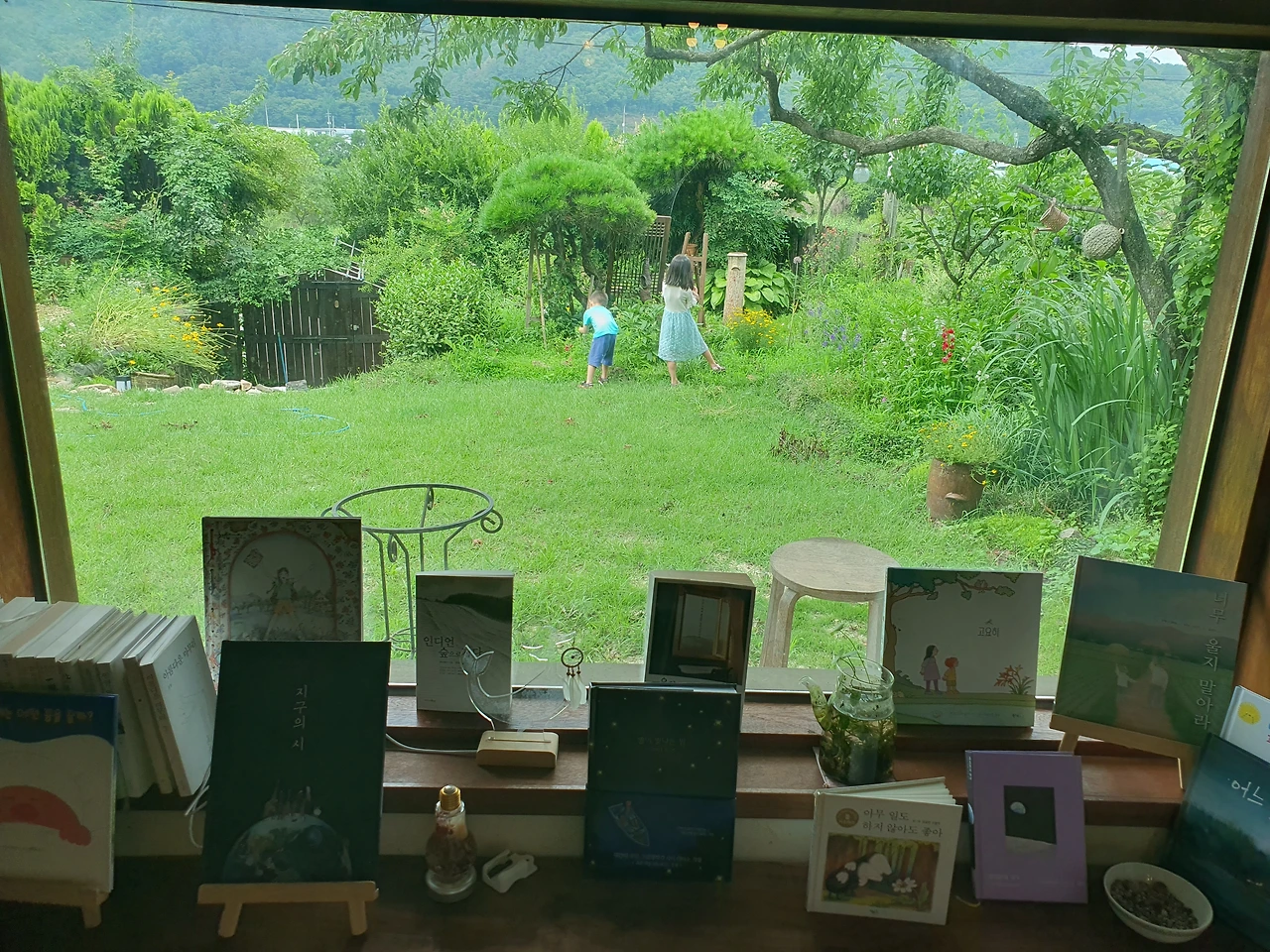 책방 외에도 공간이 하나 더 있었는데, 원래 창고로 쓰던 것을 수리해서 춤을 추고 치유 프로그램을 운영하는 공간으로 쓴다고 했다. 우리는 숙박으로 독채를 완전히 빌려 쓰는 호사를 누렸는데, 그림책들의 표지와 제목만 봐도 마음이 따뜻하고 풍요로워졌다.