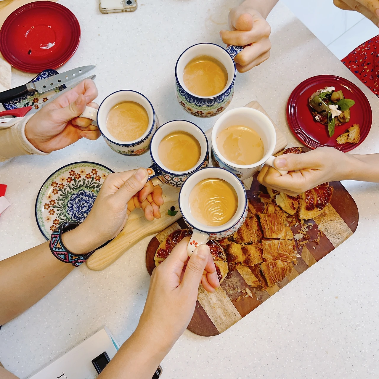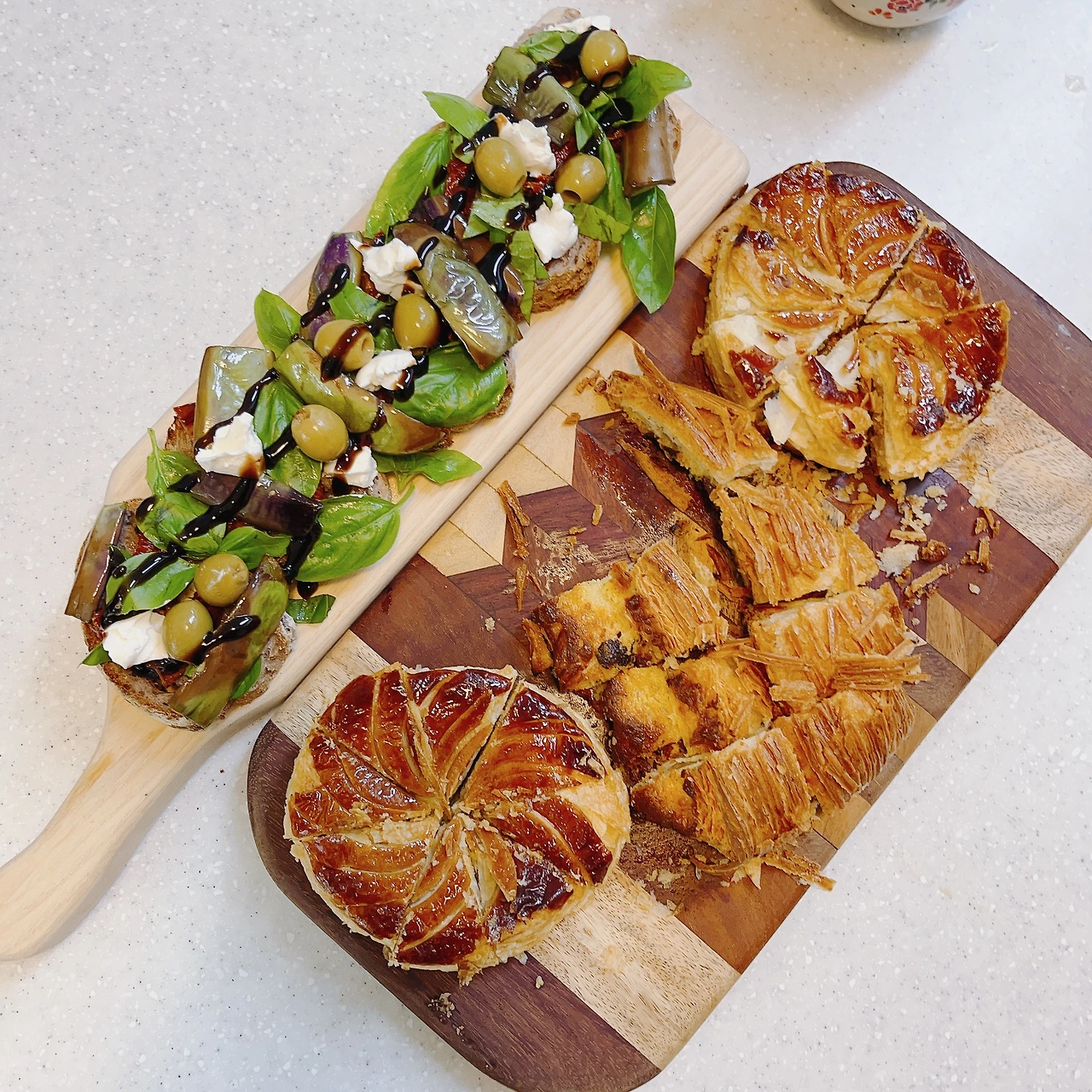 오늘은 우리 집에서 책 모임을 하게 되어 뒷마당의 작은 텃밭에서 가지와 바질을 수확해서 썬드라이 토마토, 올리브, 크림치즈를 더해 통밀빵에 얹어 먹었다. 갑자기 추워진 날씨에 짜이도 팔팔 끓여 냈다. 커피를 내려오거나 갈레트 빵을 가져온 엄마도 있어 상차림이 더 풍성해졌다.