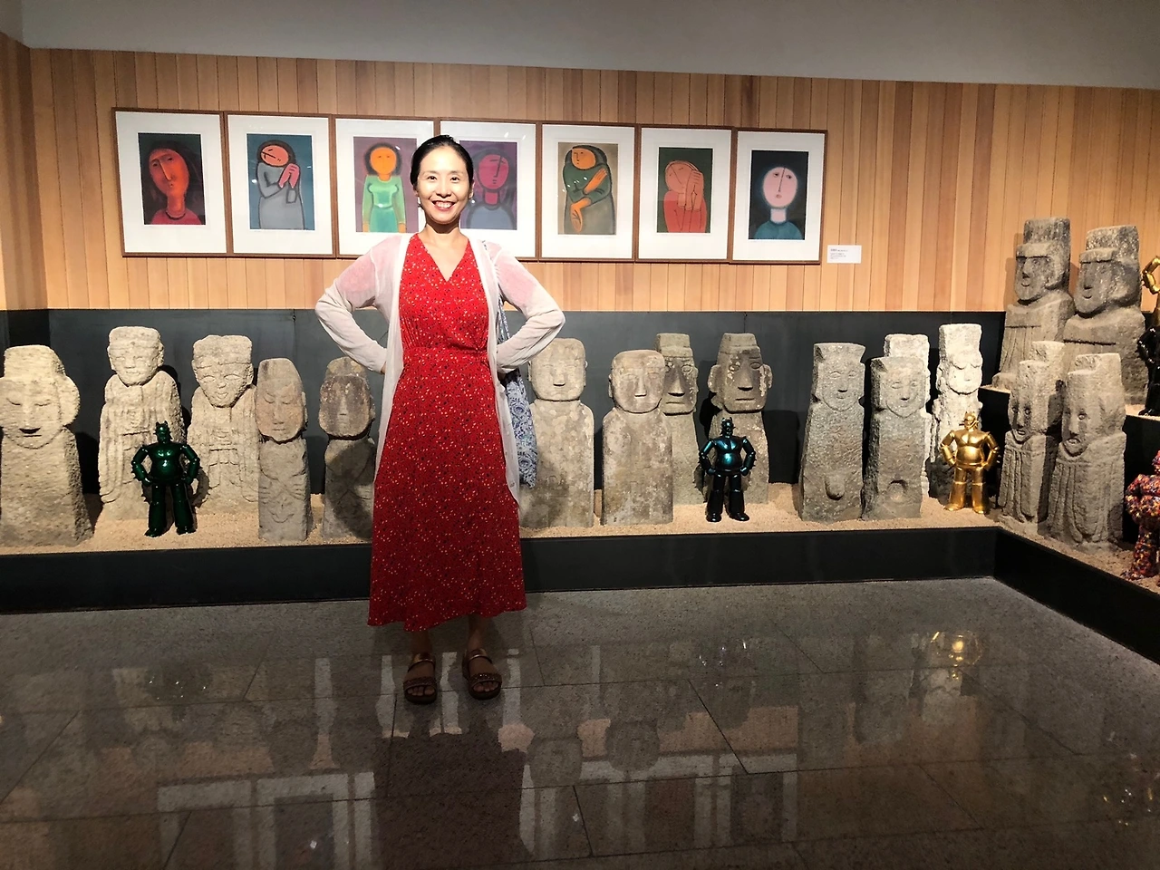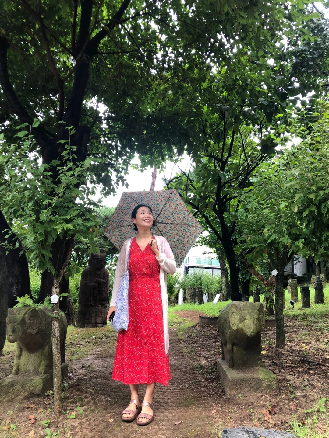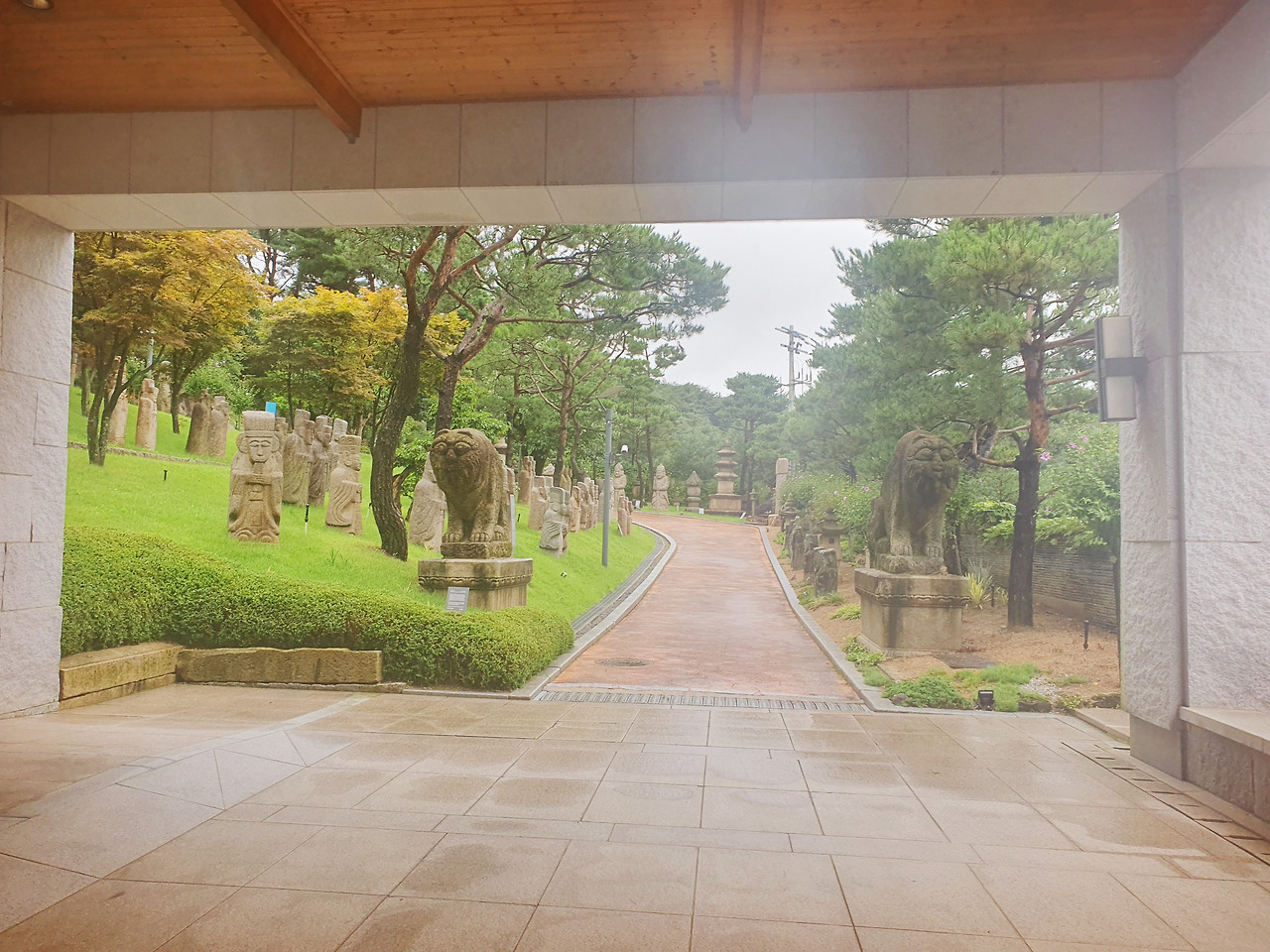 전시장 관람 후엔 야외 정원으로 나갔는데, 산책로에 무궁화가 심어져있고, 큰 석상들도 있어 마치 깊은 산속에 들어온 것만 같았다. 마침 제비나비들도 춤을 추듯 날고 있고 비가 살짝 내리며 더 신비한 분위가 나서 얼핏 신선들이 살았다던 무릉도원 같은 느낌이 들기도 했다.