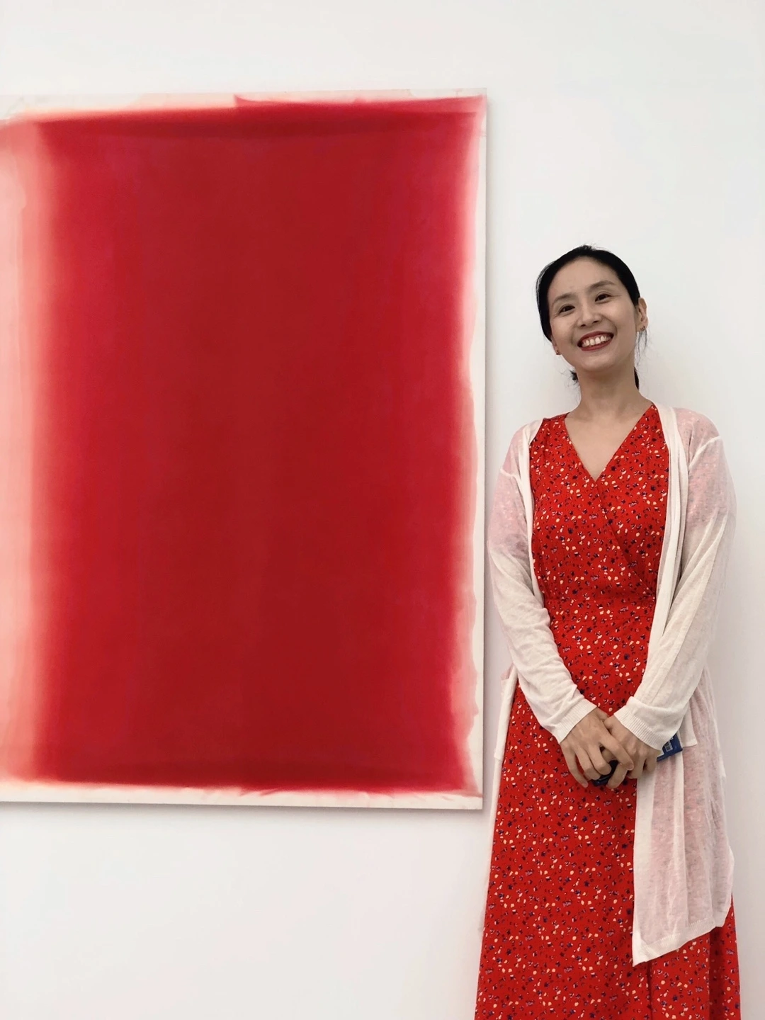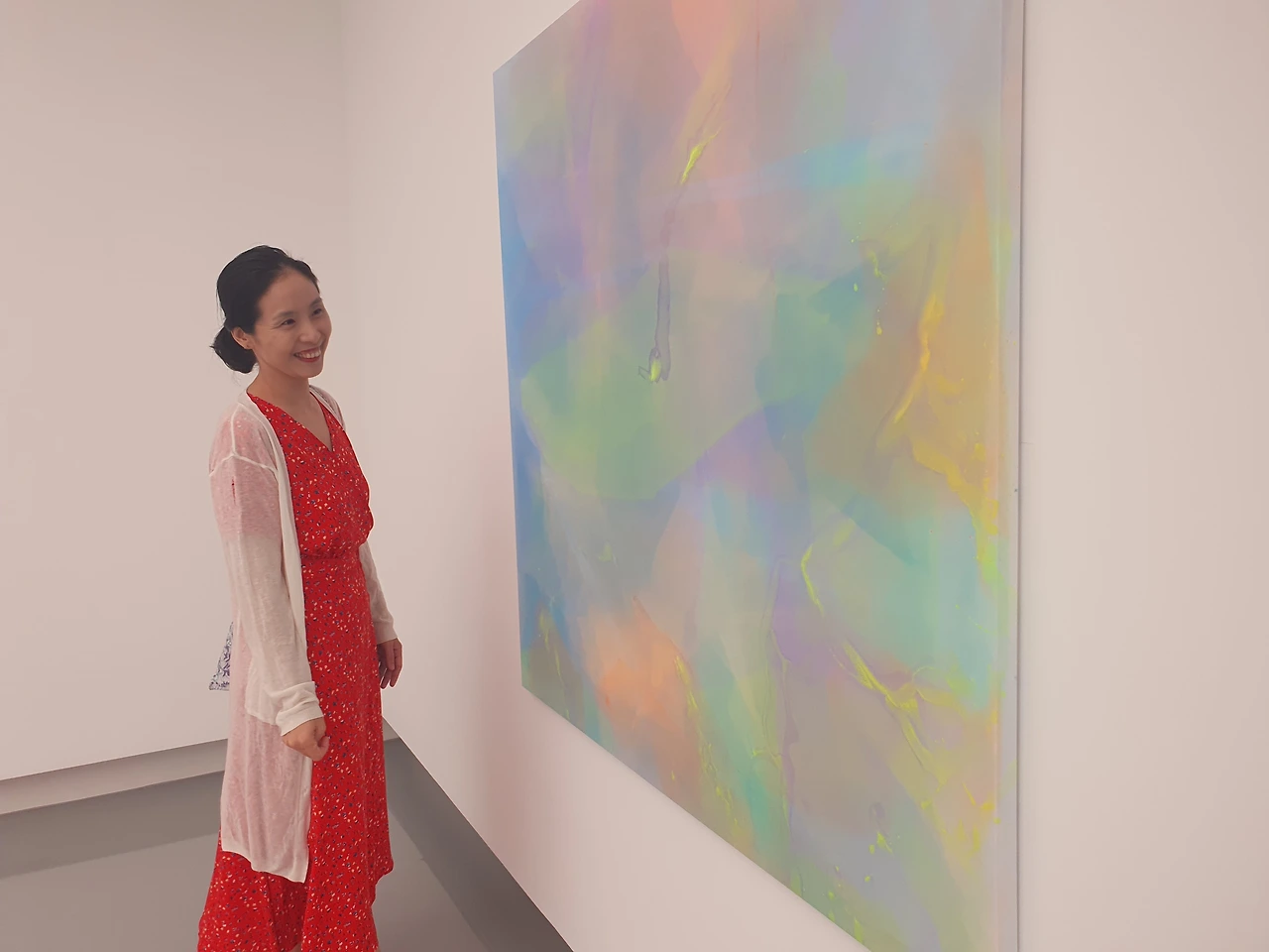 2층의 첫 번째 전시장은 빛깔이 너무나 아름다워서 감탄이 절로 나왔다. 처음엔 마크 로스코 작품이 떠오르긴 했는데 훨씬 더 밝은 느낌이 들었다. 전시의 주제인 순수한 빛이라는 단어와 딱 맞는 느낌이랄까! 알고 보니 작가님께서 특수 제작한 캔버스를 적시고 말리고 하면서 빛이 투과하게 만든 그림이라고 했다.