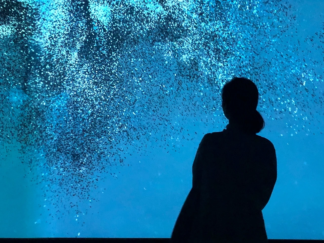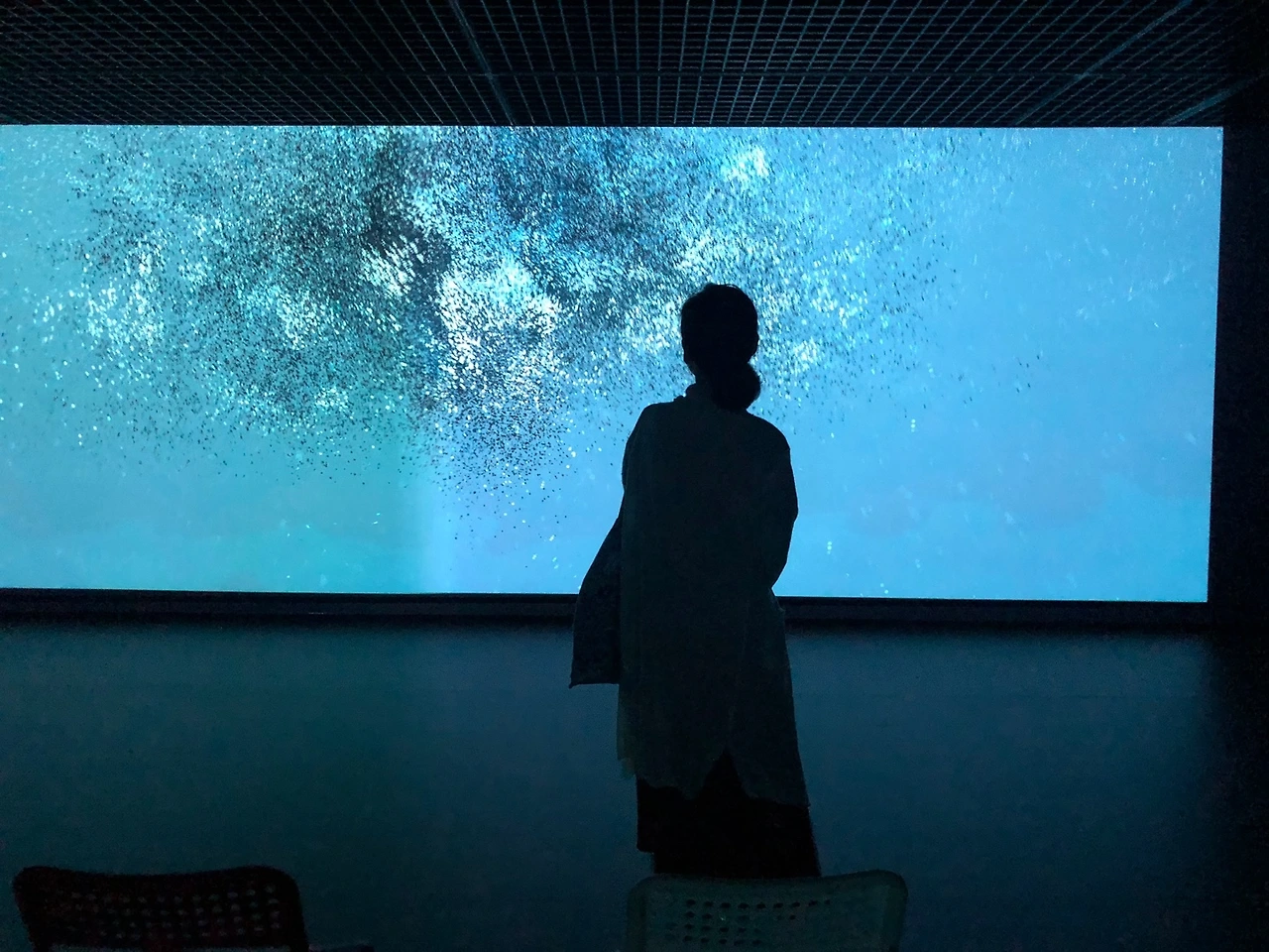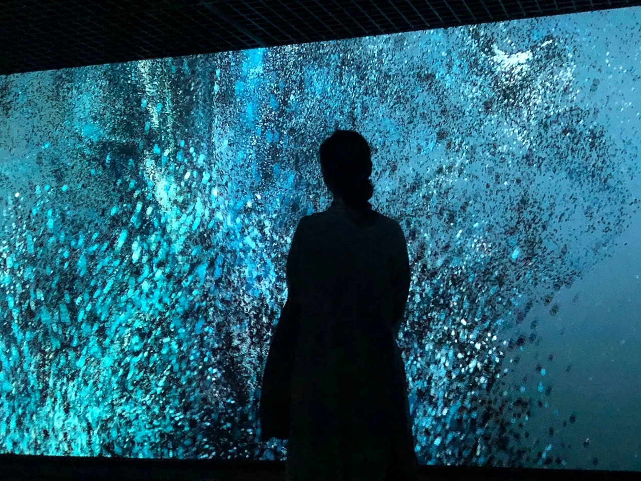 3층은 미리 관람 전 시간을 예약해야 갈 수 있는 체험형 전시였는데, 시간에 맞춰가니 먼저 어두운 공간에 앉아 헤드폰을 쓰고 마치 가이드가 있는 명상을 하듯 몰입하는 시간이 있었다. 이어서 VR과 손잡이 두 개를 끼고 체험형 비디오 아트를 감상했는데 그 주제와 영상이 참 놀랍고도 신비했다. 마치 무한의 공간에서 둥둥 떠서 내 몸과 마음을 이루는 원자, 미립자 같은 미시세계에서 계속 변화하는 흐름을 온몸으로 느끼는 기분이랄까! 나의 움직임에 반응하는 영상들을 보며 양자역학 이론들을 직접 피부로 체험해 보는 것 같기도 했다.