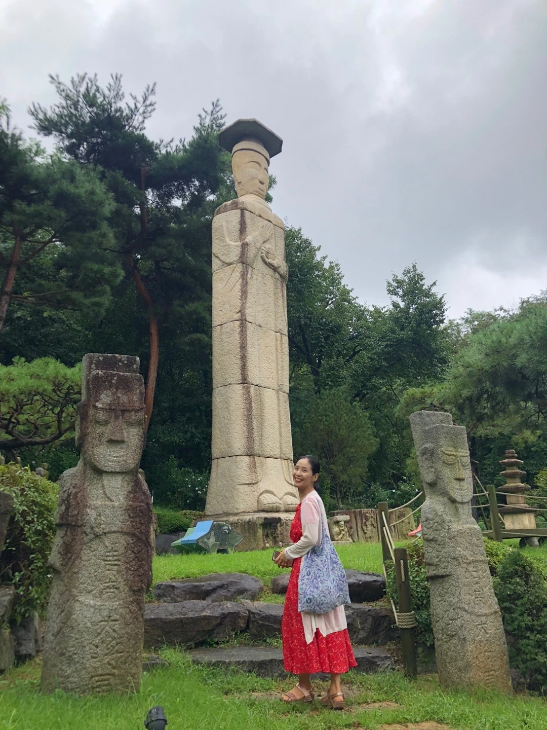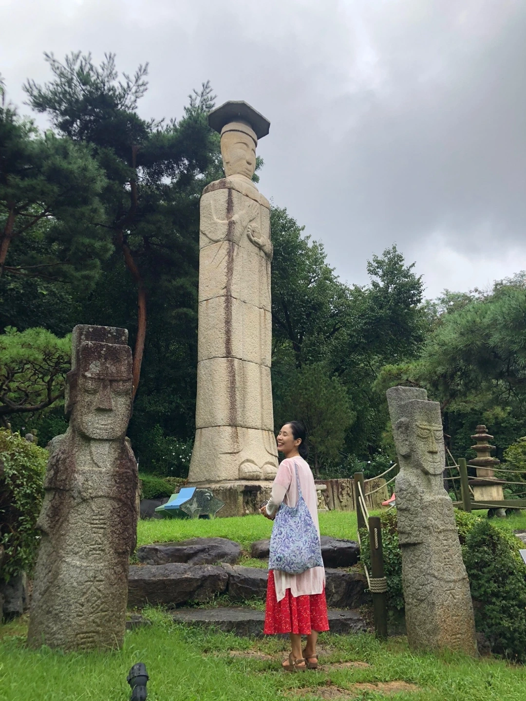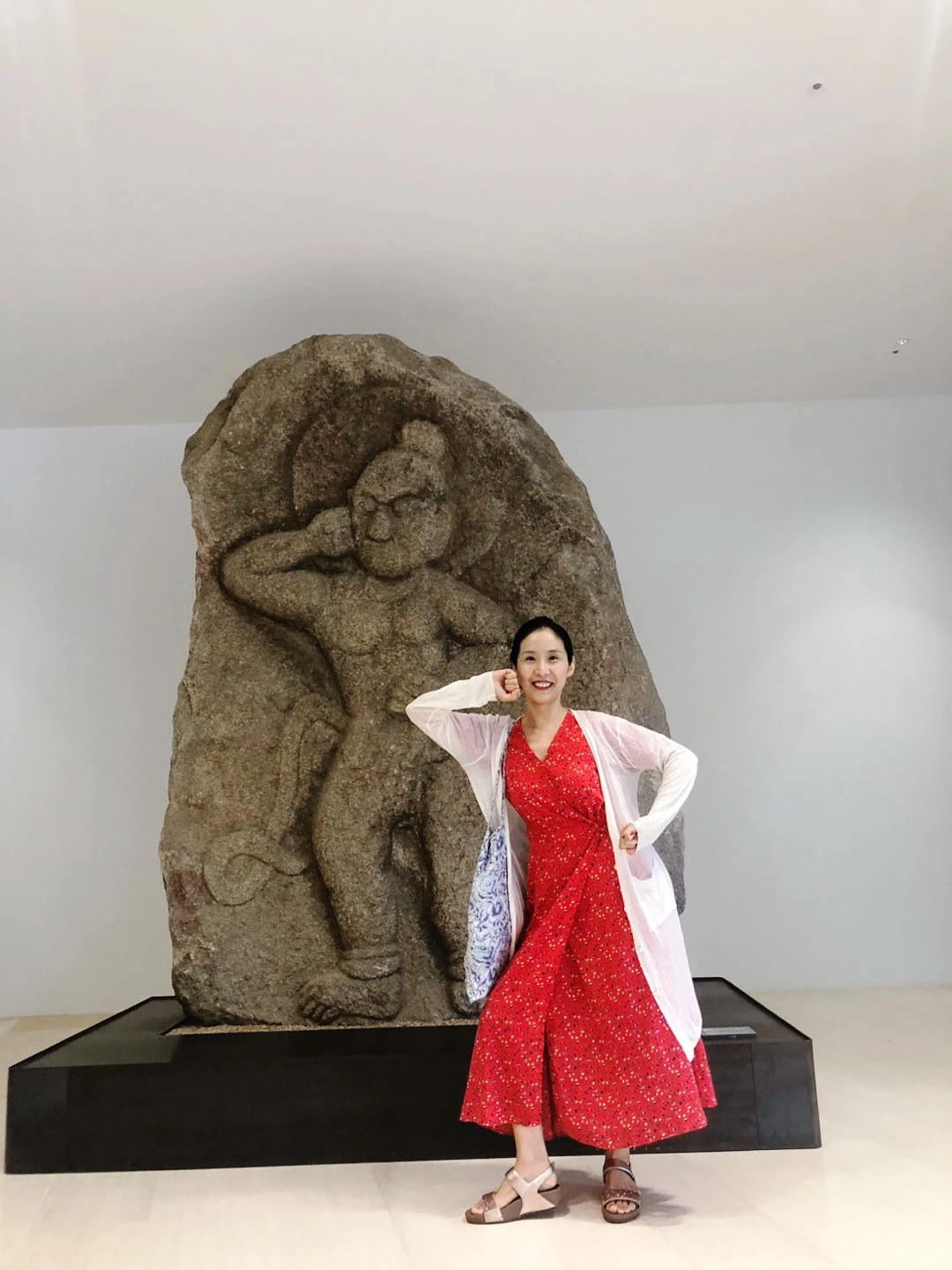 1층 매표소에는 커다란 장군(?)이 새겨진 돌이 있어 포즈를 따라 찍어보았다.