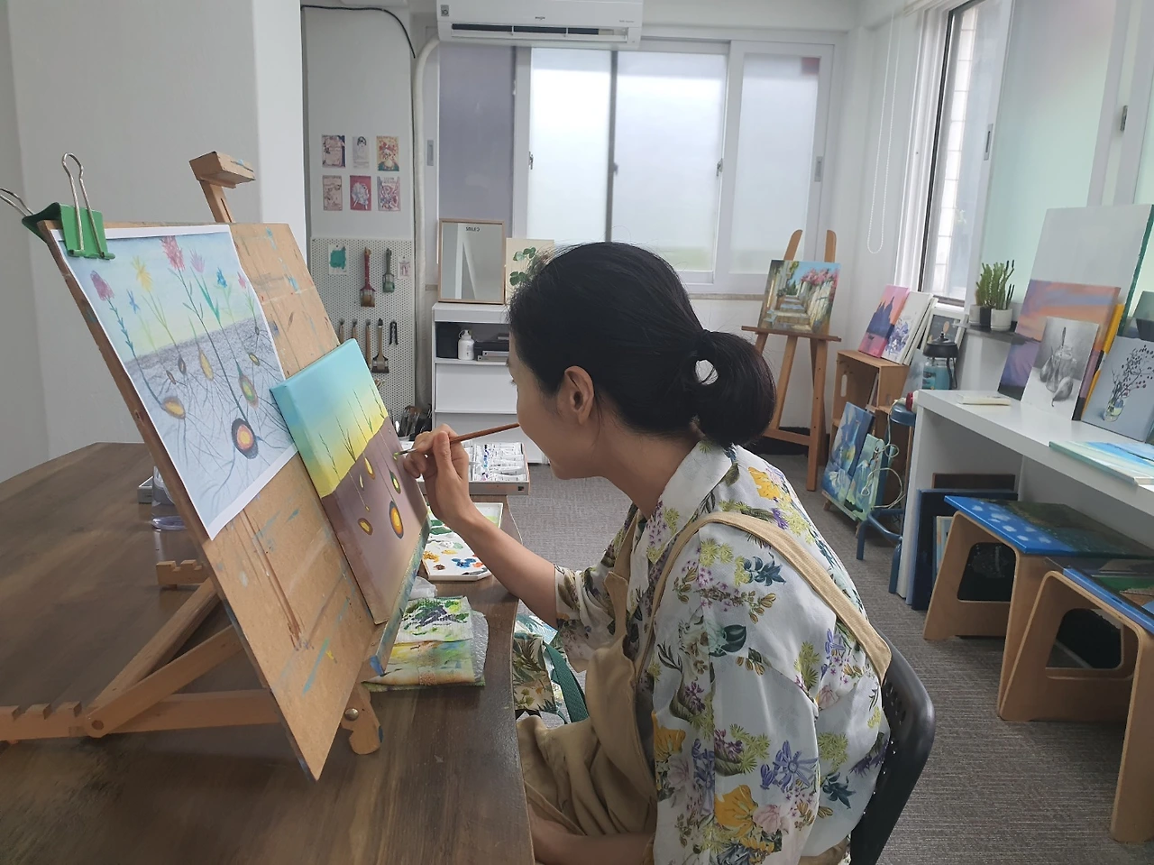 이렇게 미루다 가는 그 시간은 영영 오지 않은 것만 같았다. 그래서 이번에 강사비를 받고 가장 먼저 한 일은 화실을 등록한 것이다. 보통 생활비 외 여윳돈이 생기면 아이들에게 필요한 것을 사거나 주변 이들에게 선물을 하는 편인데 이번엔 나 자신을 행복하게 충전할 수 있는 일에 가장 우선순위를 두었다.