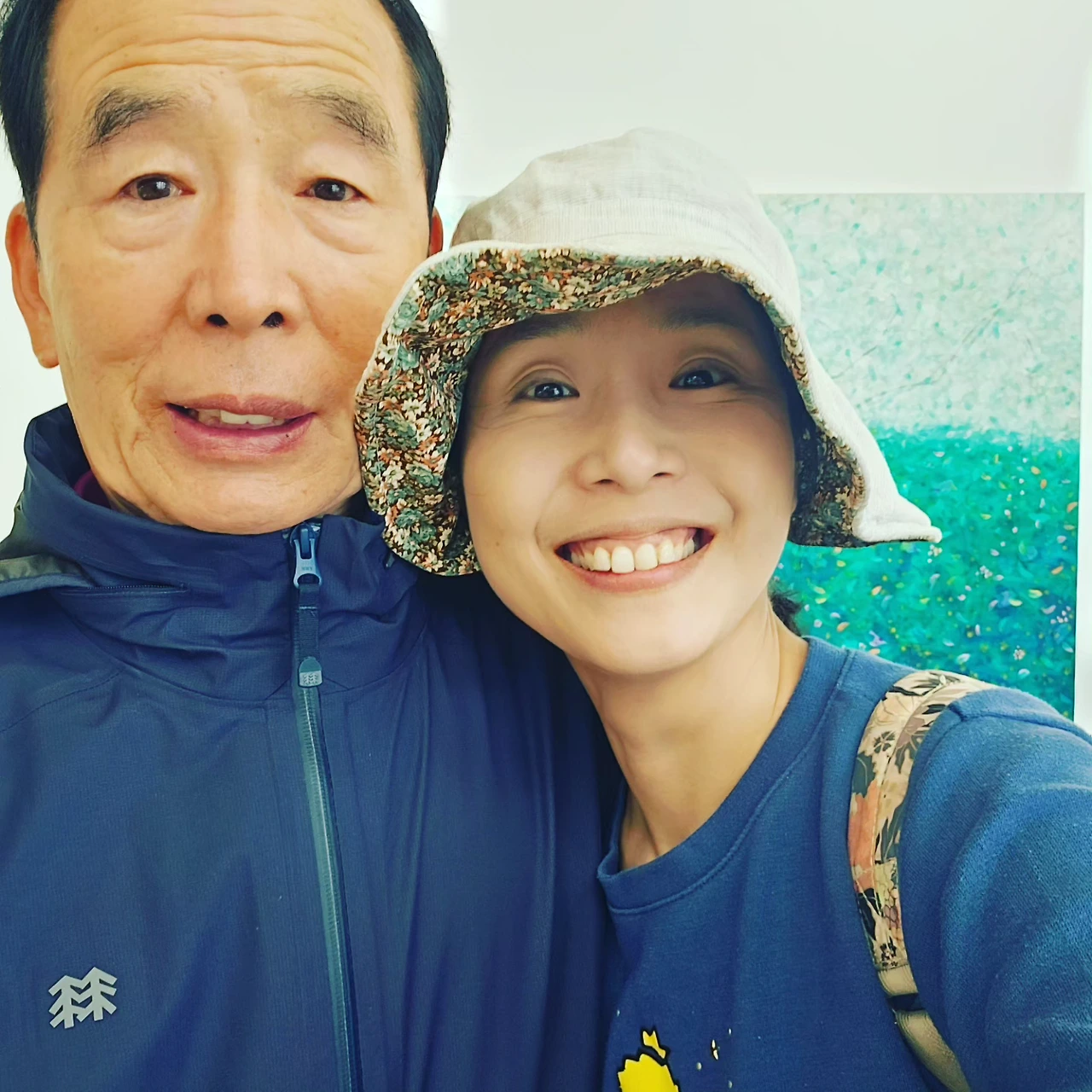 아버지와 지하 식당에서 점심 먹고서는 1층 로비로 가니 한편의 그림들이 있길래 함께 사진을 찍으려 하니, 아버지께서