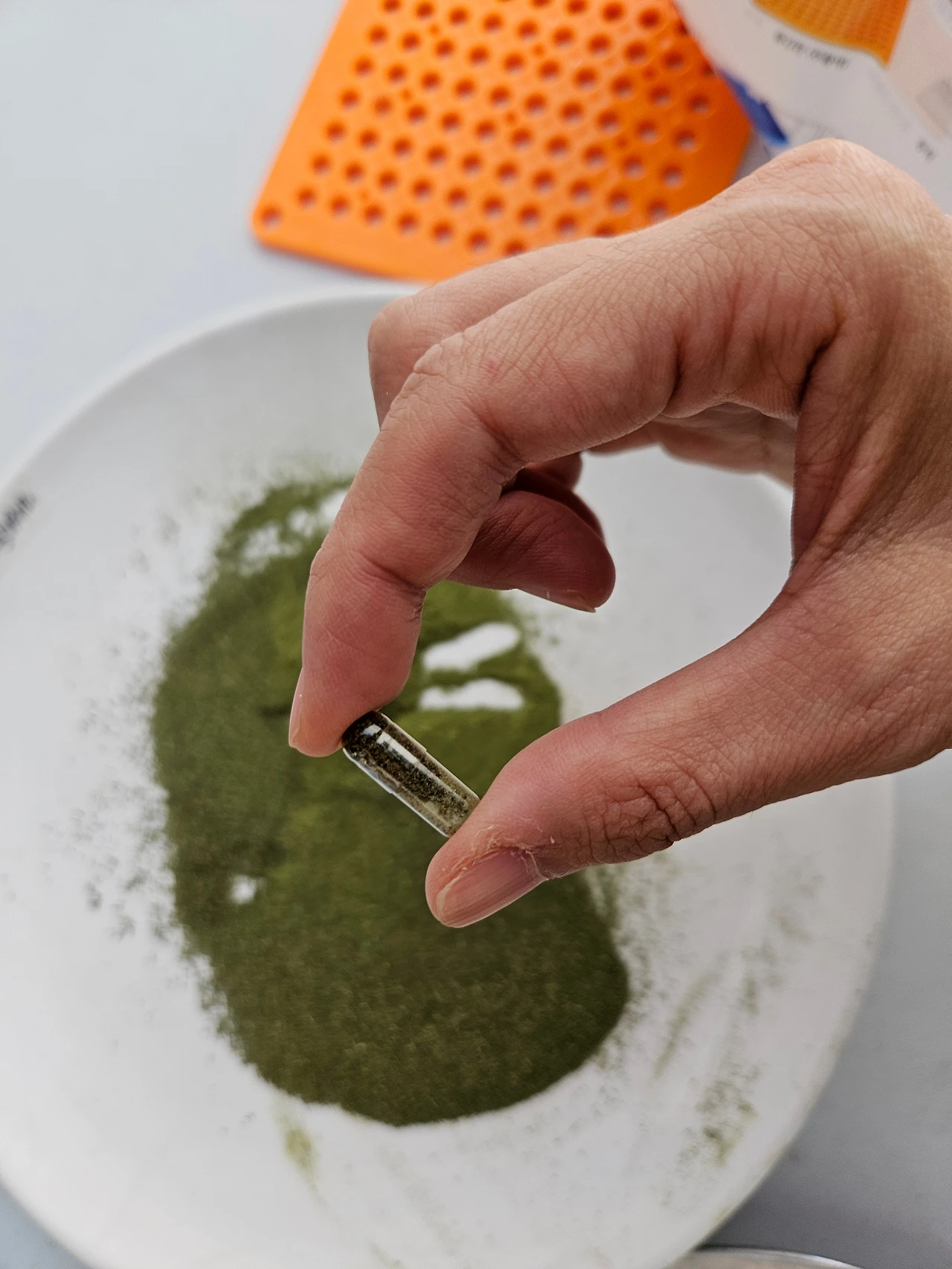 허브 가루들을 모두 섞은 뒤에는 캡슐 충진기라는 신기한 도구로 식물성 원료로 만든 알약에 허브가루를 넣고 허브 알약이 만들었다.