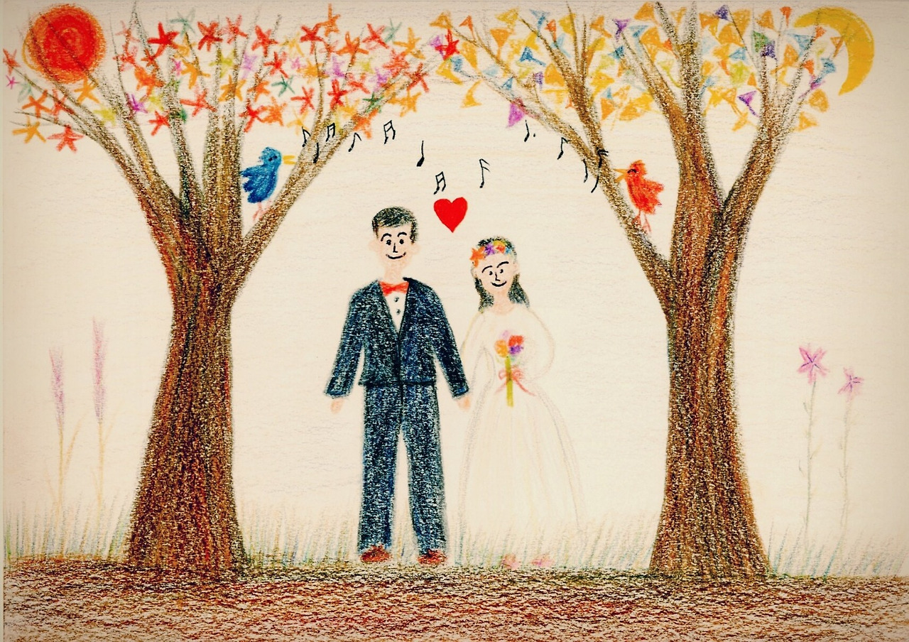 결혼식 청첩장에 넣기 위해 직접 그린 그림