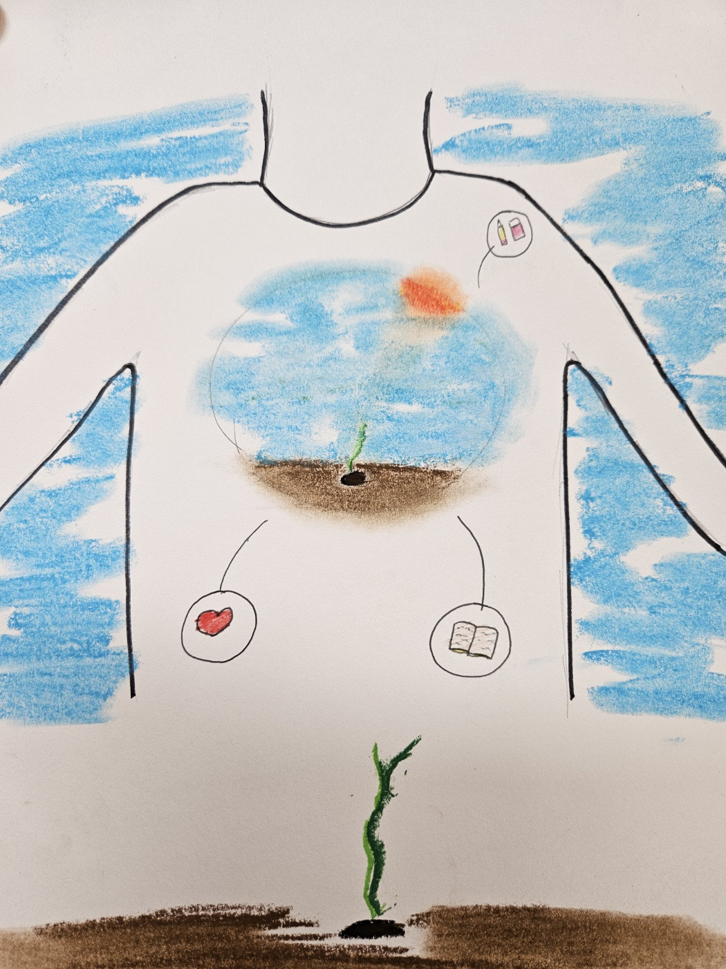 이러한 수업을 통해 아이들이 그린 그림들의 결과물은 아래와 같다(모두 아이들의 허락을 구하고 올린 그림들입니다). 이러한 그림을 게시하거나 함께 보는 시간을 가지며 서로 안의 씨앗들의 모습을 살펴보고, 서로가 그 씨앗들이 잘 싹 틔우고 잘 자라날 수 있게 응원하며, 지지해 줄 수 있는 분위기를 만들 수도 있다.