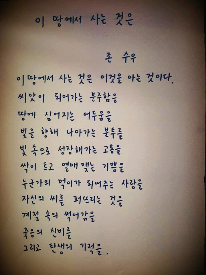 사과 속의 씨앗은 셀 수 있지만 씨앗 속의 사과는 셀 수 없듯이 지금은 비록 우리의 꿈은 모두 볼 수 없지만 우리가 힘써 가꾸어갈 때 모두가 보게 될 거야