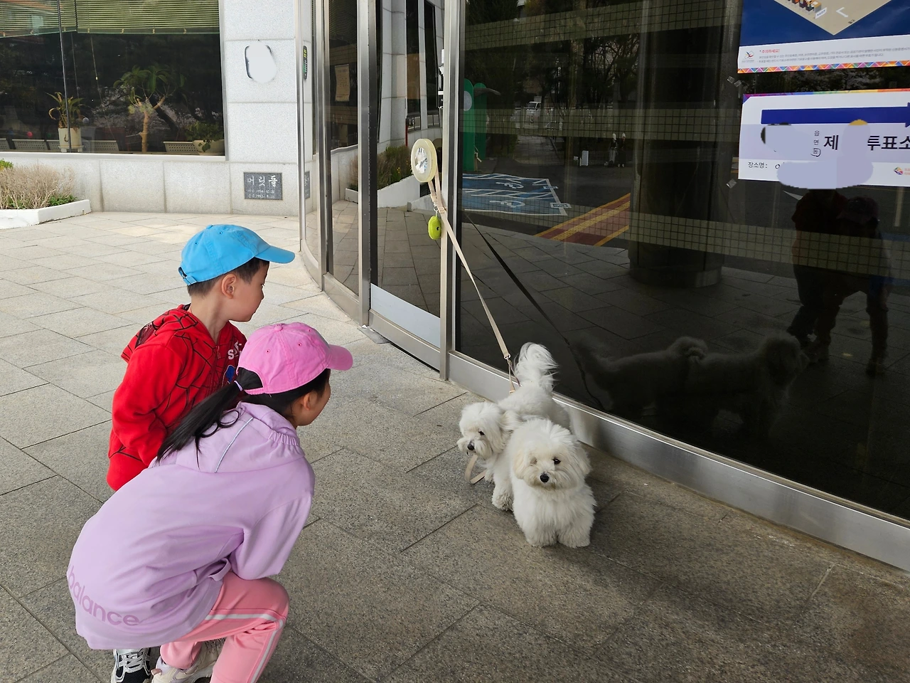 투표 장소에 들어서는데, 커다란 외제 밴이 한 대 들어왔다. 티브이에서 자주 보았던 연예인 부부가 내려 줄을 섰다. 오전 시간이었는데, 꽤 많은 사람들이 줄을 서 있었다. 근처 사찰에 계시는 듯한 비구니 스님 두 분도 투표를 마치고 나오고 계셨다. 강아지들은 함께 투표장에 못 들어가는지, 강아지를 데리고 온 사람들은 건물 현관 문 손잡이에 목줄 손잡이를 걸어두고서 안으로 들어갔다.