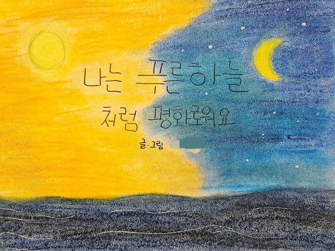 잔잔하고, 조화롭고, 평화롭고, 따스한 아이의 세계 속에서 나는 마음을 내려놓고 쉬어가는 느낌을 받았다. 미세먼지와 황사가 가득한 어지러운 날씨와 전쟁과 각종 사건사고로 혼란스러운 세상 속에서도 맑고 고요한 마음을 품고 사는 아이들이 있다는 게 감사했다. 더불어 그 평화를, 그 아름다움을 오래, 오래 지켜보고 싶고, 지켜주고 싶은 마음이 들었다.