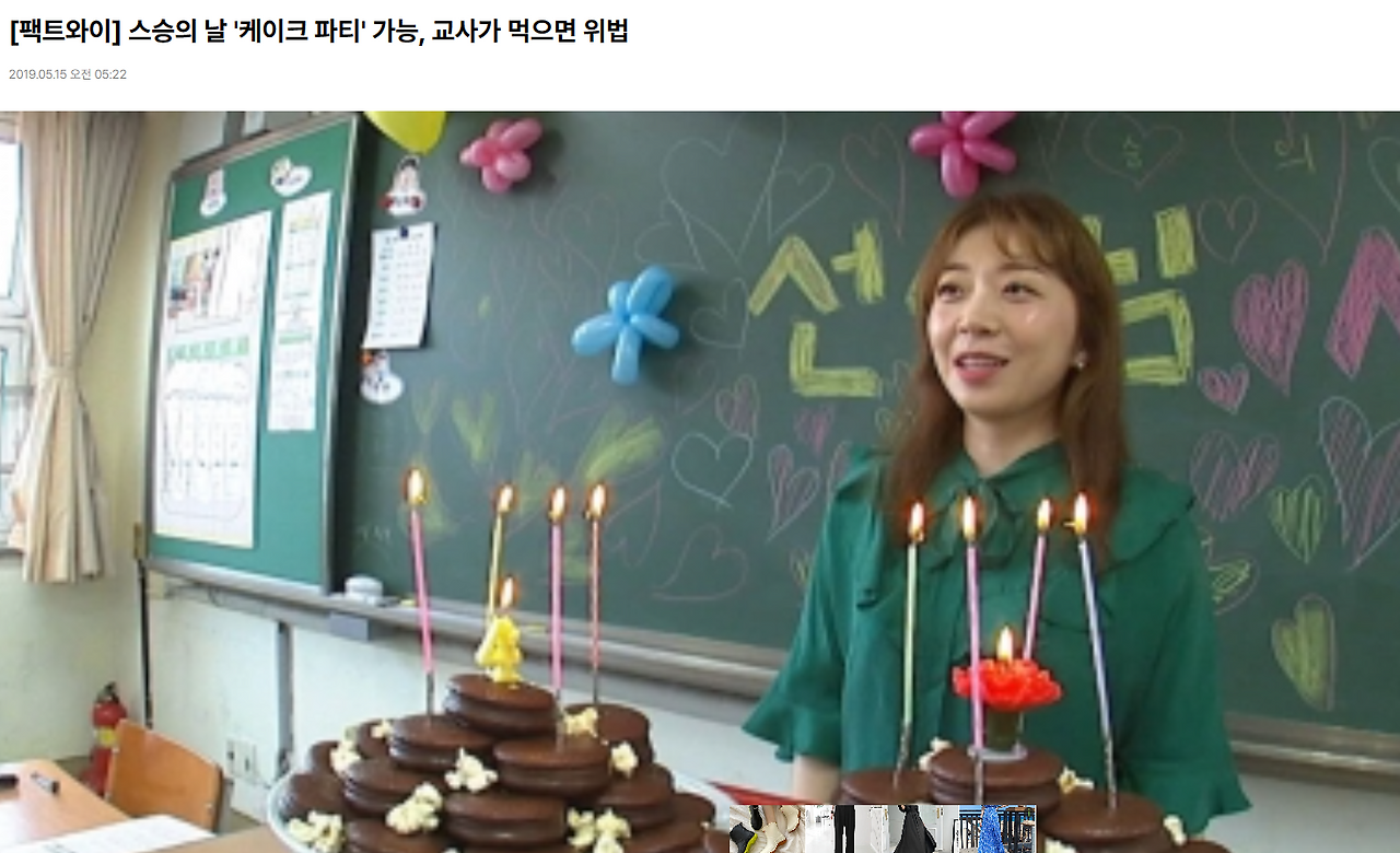 부정청탁 및 금품 수수 금지에 관한 김영란법이 도입된 이후에는 모든 것이 지나치게 조심스러워졌다. 스승의 날 케이크 파티는 가능하지만, 교사가 케이크를 한 입이라도 먹으면 불법이라는 기사를 보고 선생님들은 허탈한 웃음을 지었다. 물론 예전처럼 촌지나 상품권 등의 금품은 당연히 근절되어야 마땅하고, 그 외의 선물 등을 바라는 것은 아니지만, 그것을 너무 강조하다보니 역효과도 있는 듯하다. 실제로 요즘 학교에 다니는 아이들은 스승의 은혜라는 노래도 스승의 날이 어떤 날인지도 잘 모른다고 했다. 그래서 오히려 올해처럼 휴일인 게 더 낫다는 선생님들의 말씀에 나 역시 그러려니 했다.