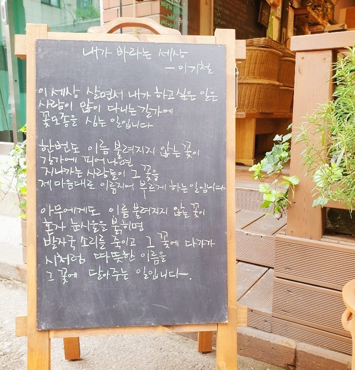 최근에는 우연히 지나간 골목길에서 아름다운 시들이 입간판으로 세워진 작은 빵집을 발견했다. 시구절이 발걸음을 멈추게 해서 가게 안으로 들어갔는데, 그 안에는 우리밀 통밀로 정성껏 건강한 빵을 만드시는 사장님이 계셨다. 빵이 곧 자신이라고 생각하시며, 건강한 빵과 시를 나누는 삶을 살아가시는 사장님은 모든 꿈을 이룬 사람처럼 환한 표정을 짓고 계셨다. 엄마에게 보내드릴 빵을 택배로 주문하며 연락을 드렸을 때 사장님께서는 내게 새로운 시 한 편을 보내주셨는데, 그 시에 내가 지금까지, 그리고 앞으로 이루고픈 꿈이 그대로 담겨있었다.