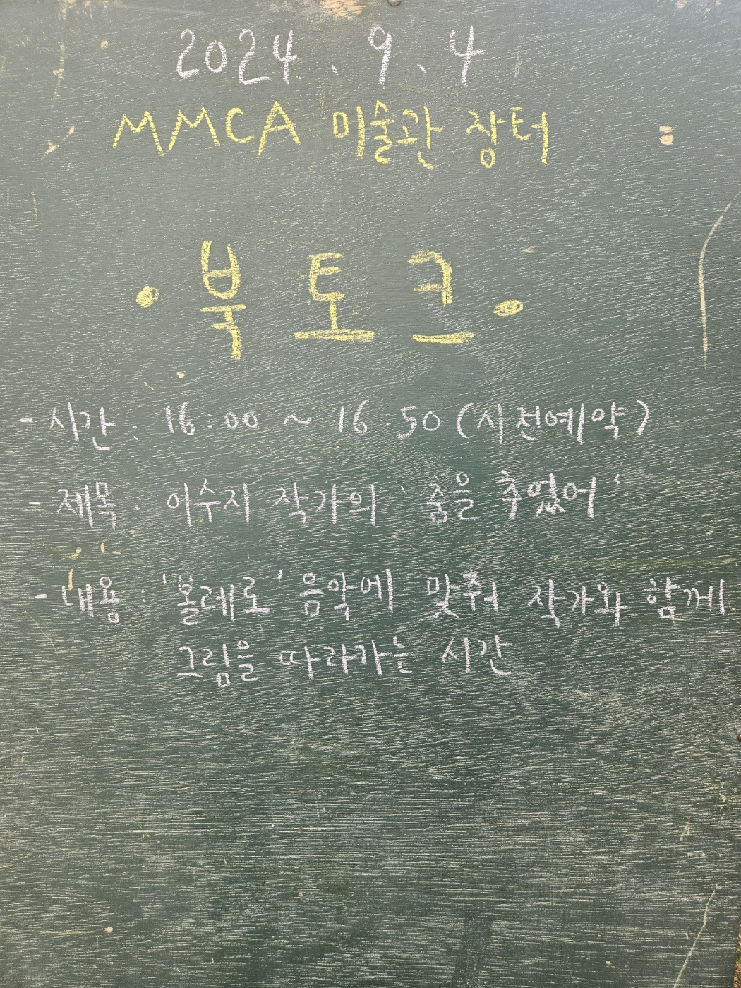 북토크 이후에는 작가님에게 사인도 받고, 국립현대미술관 안에 있는 테라로사 카페에서 숨도 고르고, 이후에 이어진 공연도 조금 보다가 집으로 향했다. 오전에는 일을 하고, 오후에는 아이들을 돌보는 엄마로 살아가다 잠시 주어진 사이의 시공간이 내겐 무척 소중하게 느껴졌다. 그리고 집에 가는 내내 나는 어떤 리듬과 박자로 살아가고 있는지, 그에 맞춰 나는 어떤 춤을 추고 있는지를 물어보고, 돌아보게 되었다.