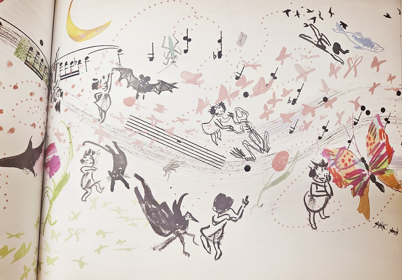 이 외에도 작가님께서는 여러 자료들과 함께 작업 과정 등을 많이 공유해 주셨는데, <춤을 추었어>라는 제목처럼, 그림책 시작 부분에 지휘봉과 음표를 들고 있던 아이는 앞서 굴러가는 음표를 따라가다 만나는 존재들과 춤을 추는데, 그 그림들을 그릴 때는 음악을 들으시며 내 마음속에 춤추는 아이를 만나셨다고 하셨다.