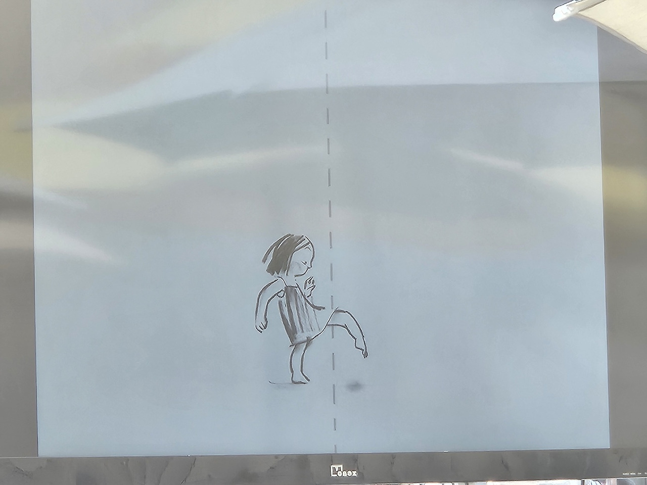 이수지 작가님은 그림책을 어른과 어린이, 글과 그림, 문학과 미술 '사이'에 있는, 예술적이면서 동시에 실용적인 것이라고 표현하셨다. 그리고 평소 당신이 그런 사이에 관심이 많고, 아날로그와 디지털 사이의 무언가도 고민하던 중, 그림책에 영감을 준 음악과 함께 애니메이션 작업을 하셨단다.