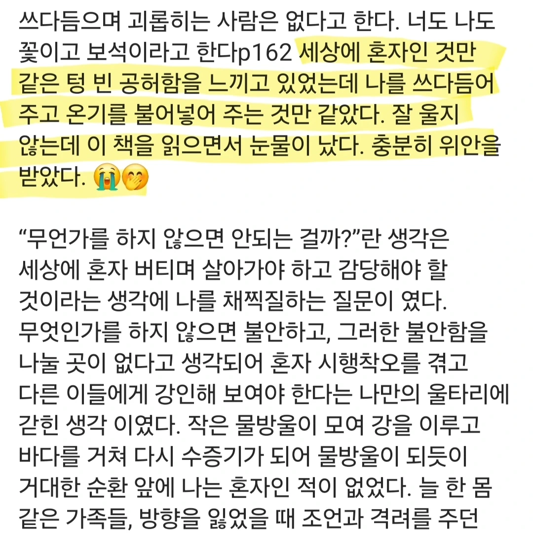 무엇보다 이렇게 출간하자마자 큰 관심과 사랑 주셔서 진심으로 감사드립니다. 깊은 사랑이 담긴 후기들이 마음 깊이 닿아 읽으며 눈물이 났습니다. 책을 통해 더 많은 분들과 연결될 수 있어 기쁘고 감사합니다.