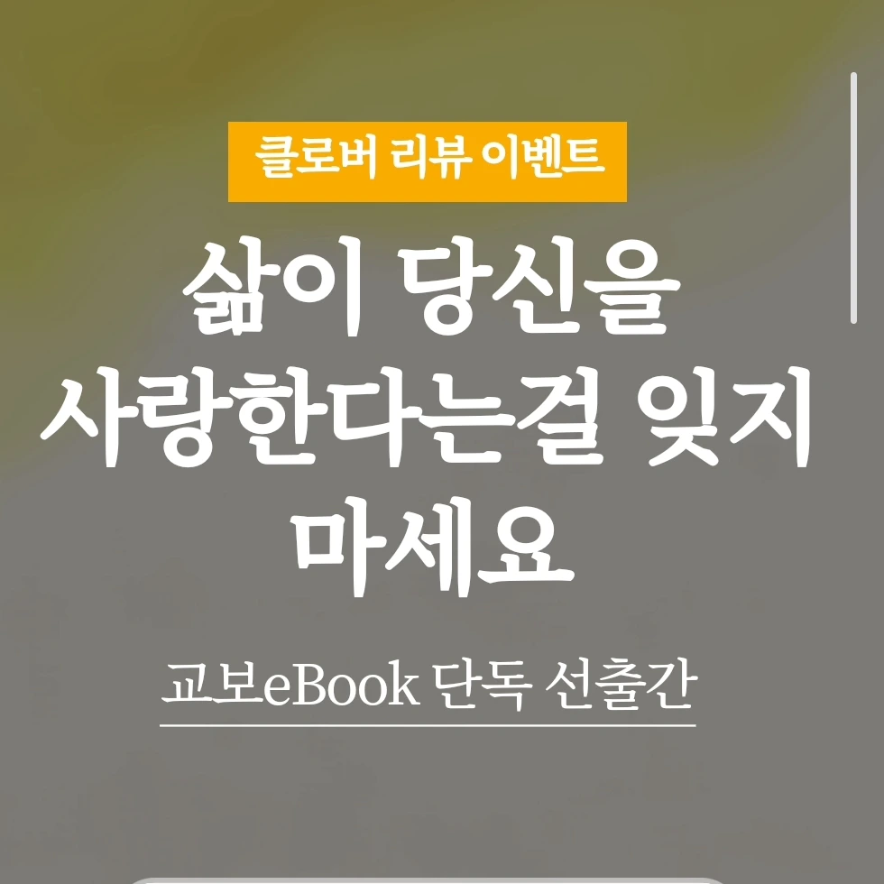 현재 광화문 교보문고 신간 에세이 진열대에서도 만나실 수 있고, 교보 e Book 클로버에서는 기다림 없이 바로 읽으실 수 있으며 리뷰 이벤트 참여도 가능합니다.