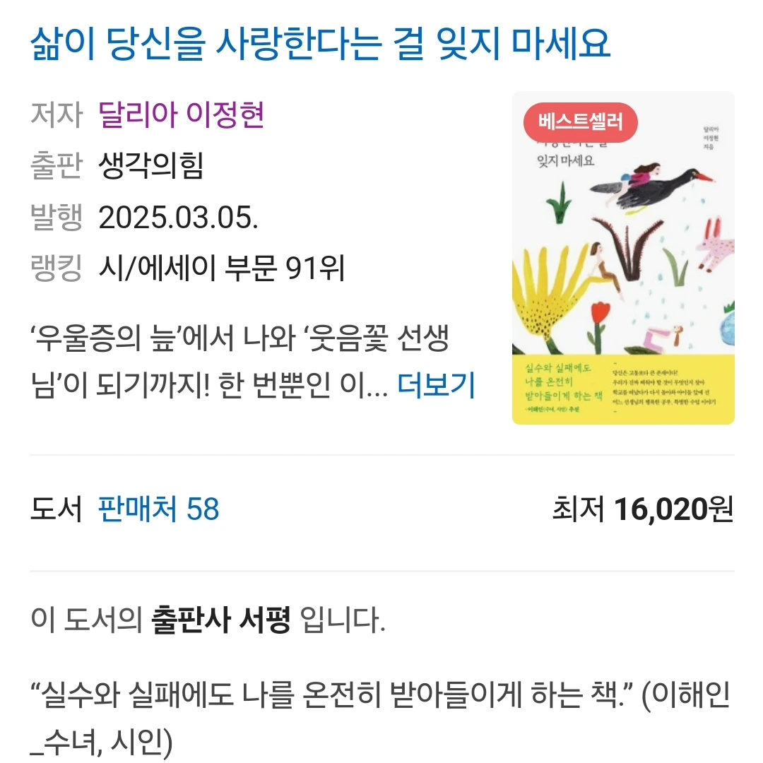 #에세이베스트 #신간베스트 #삶당사 #삶이당신을사랑한다는걸잊지마세요 #필사하기좋은책 #신간이벤트 #md의선택 #교육베스트 #카카오톡선물하기 #화이트데이선물