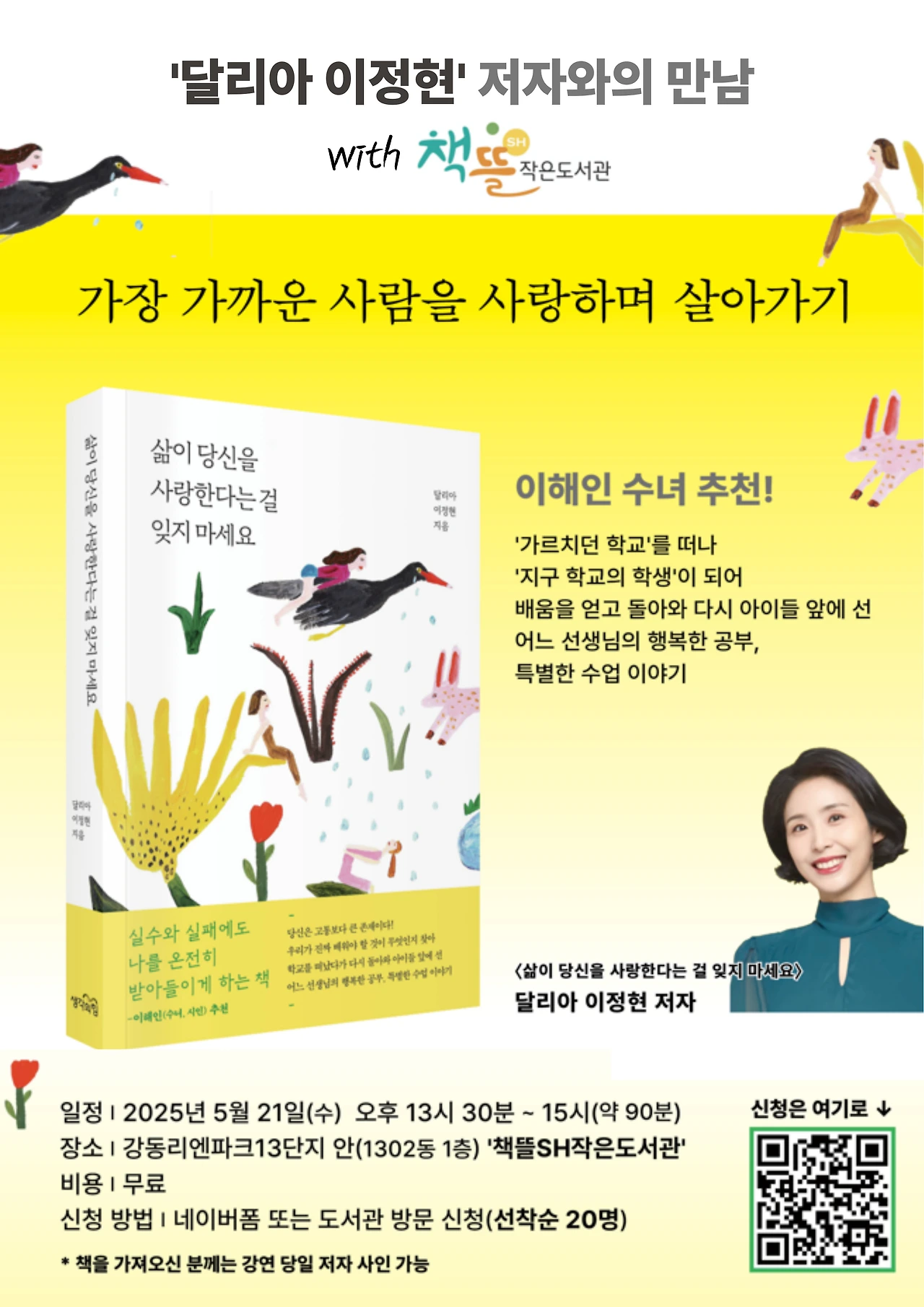안녕하세요? 책뜰SH작은도서관에서 작가와의 만남 행사를 진행하여 안내드립니다.